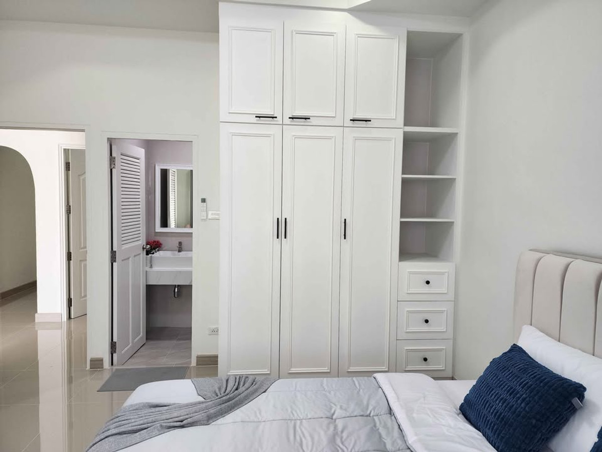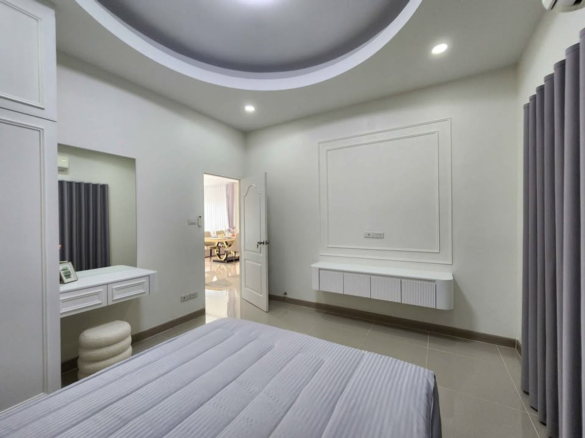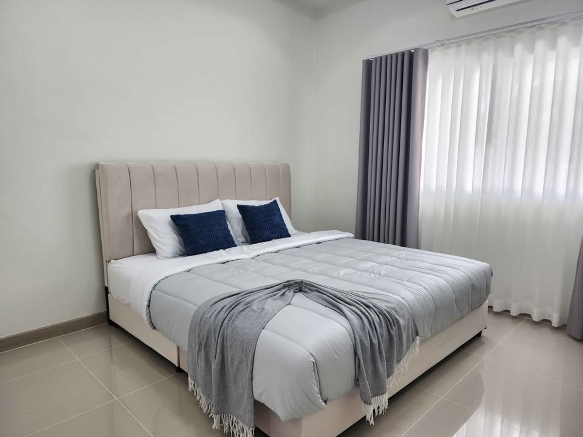 Modern style semi-detached house Ready to move in Nong Mai Kaen zone, Pattaya Price 3.59 million baht 📍 Rawiporn City Home project Nong Mai Kaen Details: • 3 bedrooms, 2 bathrooms • Wide, airy living room • Separate kitchen with stove + hood • Washing area • 1 parking space • Furniture + complete built-ins • 3 air conditioners The project has 24-hour security guard Wide road. Calm atmosphere reduced from 3.79 million to 3.59 million House ready for transfer. Ready to move in If interested, chat / make an appointment to see the house Tel/Line: Contact number
