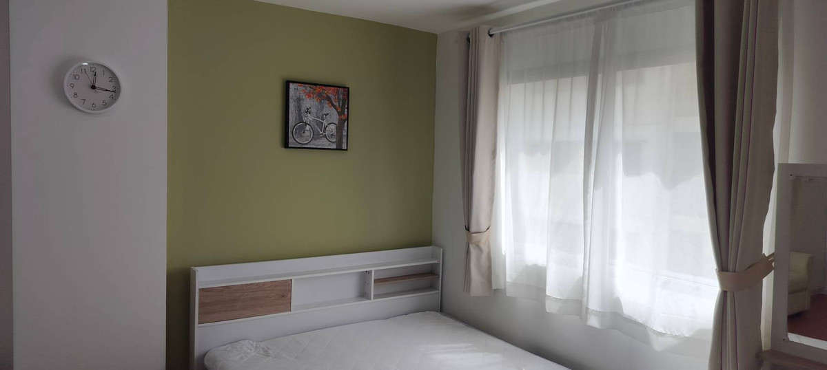 Building E4, 5th floor, room in front of the building, near the elevator, very convenient 21.58 sq m., completely renovated. Change all lights to LED New furniture from Dohome, complete set with dressing table , complete electrical appliances, refrigerator, microwave, all new Smart TV , air conditioner, water heater , double layer curtains *near the van parking spot. Bangkok University* Contact number (room owner)