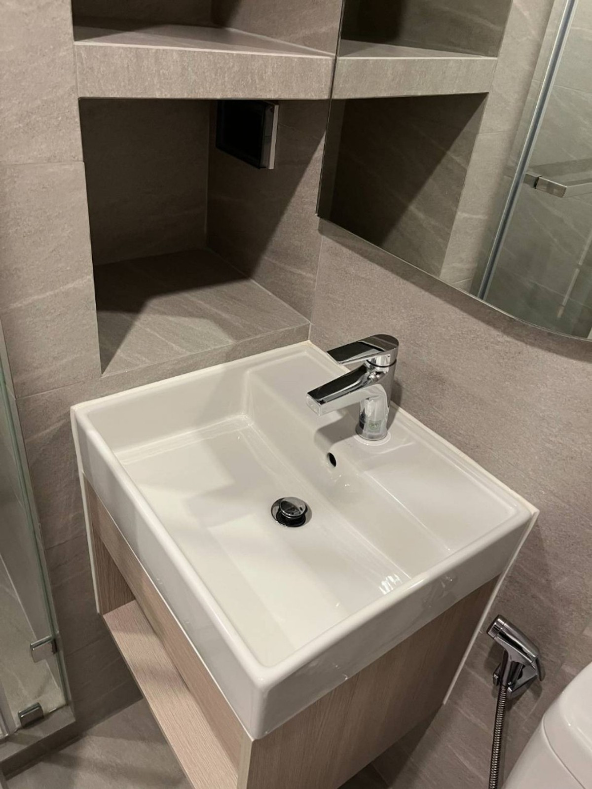 Condo near BTS Wongwian Yai Studio size d 26 sq m. Building B, 9th floor Fully Furnished with electrical appliances Smart TV, refrigerator, water heater, air conditioner, microwave With parking for 1 car