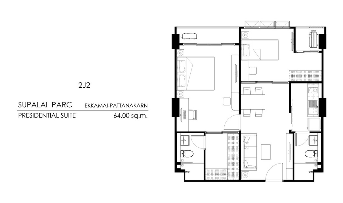 ขายดาวน์คอนโด Supalai Parc Ekkamai–Pattanakarn Presidential Suite อาคาร A ชั้น 30 ห้องขนาด 64 ตร.ม. - Tower A เหมาะสำหรับการอยู่เอง สะดวกสบาย ใกล้ทางเข้า-ออก - ชั้น 30 Presidential Suite เป็นชั้นที่มี