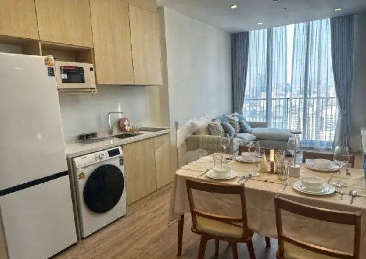 SK050 Modern design condo for rent in the heart of Sukhumvit 39 within the Noble State Sukhumvit 39 project, potential location, convenient travel, near BTS Phrom Phong and M District, with shuttle service to and from the station every half hour Room details 2 bedrooms, 2 bathrooms Size 60.5 square meters 30th floor, high view, airy, open Conventional parking for 2 cars Complete furniture and electrical appliances in the room TV LED 65 inches, living room TV LED 55 inches Master bedroom 6 foot bed L-Shape sofa size 2.4 meters Washing machine and dryer Refrigerator Microwave Hot and cold water shower system Premium common facilities 11th Floor Game Room Library Counter Bar Tea Terrace 37th Floor Salt system swimming pool, Half Olympic size with Jacuzzi Fitness Steam Room Sky Lounge 38th Floor Rooftop Garden Outdoor Chef Table Farm, green area for relaxing Rental conditions Rental price 65,000 baht per month 1 year contract 2 months deposit, 1 month advance Ideal for small families, couples or executives who need 2 bedrooms in the Phrom Phong area. With parking for 2 cars, which is hard to find in this area If interested, ask for more details. Or make an appointment to see the room LINE: @phenomenal.estate Tel: Contact number The team is ready to provide professional care and advice