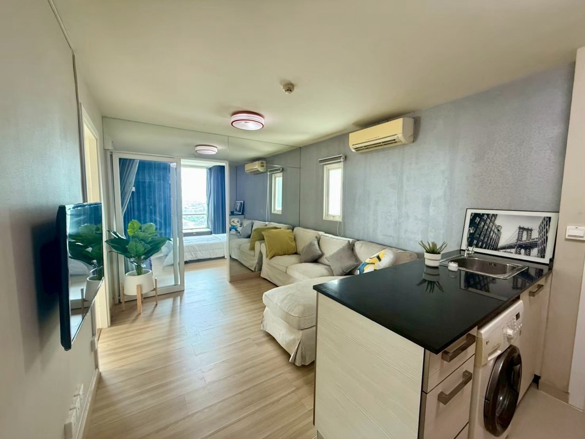 Comfortable living, open view, good wind, good atmosphere all day 📍 M-Society Condominium 28th floor, very beautiful lake view 🛏 2 bedrooms 🛁 1 bathroom 🛋 1 living room + kitchen ✨ Fully furnished. Drag your bags and move in 💰 Selling price only 1.99 million baht 🤝 Transfer fee is half each.