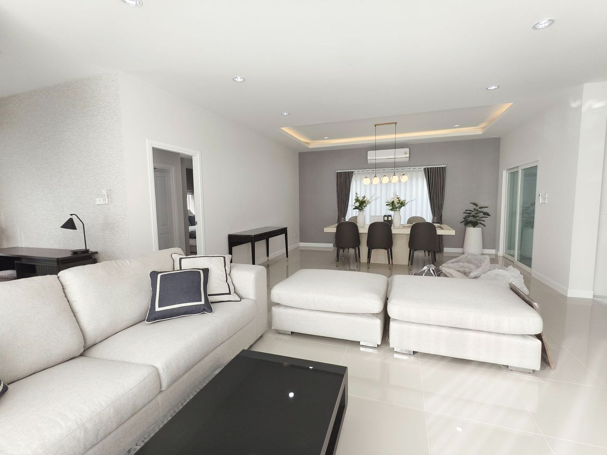 2-story detached house for sale, good location, San Kamphaeng District. Chiang Mai Province Location: Ton Pao Subdistrict, San Kamphaeng District Chiang Mai Province 50130 Area size: 77 square wah Usable area size: 266 square meters Details Large detached house. Fully furnished throughout strong structure. Drive the piles well. Ready to move in immediately House functions -4 bedrooms -5 bathrooms -3 parking spaces More freebies. 10 items - 6 air conditioners - 2-layer curtains throughout the house - Mosquito screens throughout the house - 1 Smart TV 65 inches - 1 refrigerator - Built-in kitchen - Gas stove + exhaust hood - Free CCTV installation - Free ownership transfer fee - Free water - electricity meter - Additional discount 150,000 Baht Project facilities -Security guard. 24 hours -entry-exit system Scan vehicle license plate - Provincial water supply system - Provincial electricity system - CPAC roof - Vinyl eaves ceiling SCG -American Standard sanitary ware Highlights Close to international schools, hospitals, department stores. and the airport potential location (San Kamphaeng Mai Line) -8.5 km. from Varee Chiang Mai School -9 km. from Unity Concord International School -12 km. from Bangkok Hospital Chiang Mai -14 km. from Central Chiang Mai Airport -20 km. from Central Festival Chiang Mai -15 km. from Chiang Mai International Airport Special price only 8,548,000 baht Interested in receiving promotions? Or make an appointment to view the project Call: Contact number Line ID: mammy7589 Open for viewing every day Monday - Sunday from 8:30 a.m. - 6:00 p.m. Terms and conditions apply to the company. Set request for highlights