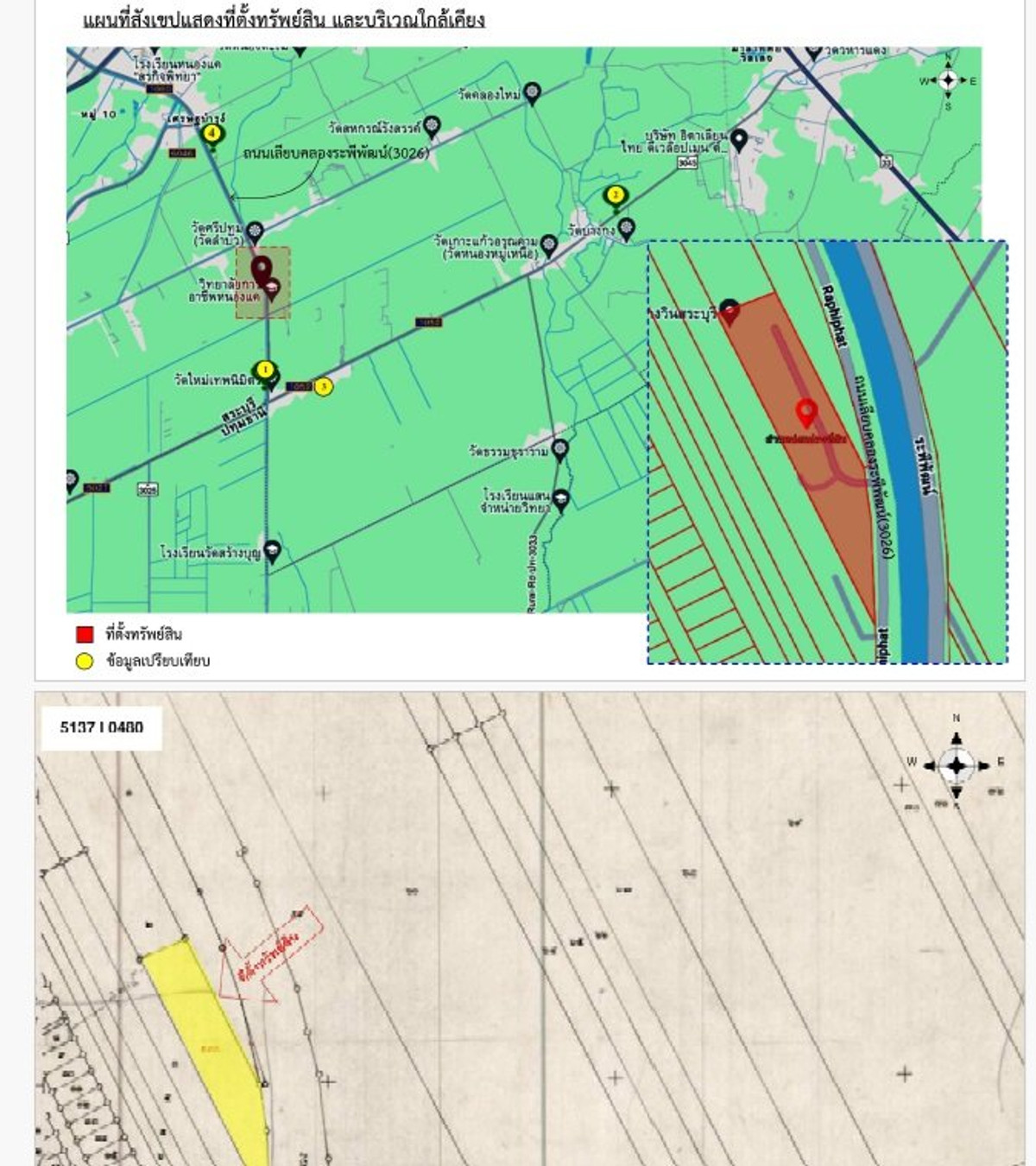 Property Highlights Land Title Deed (Chanote): No. 3556 Total Area: 14 Rai, 3 Ngan, 85 Sq. Wah (approx. 23,940 sq. meters) Dimensions: Width 185 m x Depth 410 m Buildings & Improvements Office Building: 1-story building (No. 20, Moo 8) | Usable area: 60.00 sq.m. Residential House: 1-story bungalow | Usable area: 42.00 sq.m. Tool Shed: (Note: This structure has been demolished) Security Booth: 1-story guard post | Usable area: 9.00 sq.m. Open-Sided Warehouse/Shelter A: 1-story | Usable area: 118.00 sq.m. Open-Sided Warehouse/Shelter B: 1-story | Usable area: 228.00 sq.m. Reinforced Concrete Building: 1-story multipurpose unit | Usable area: 36.00 sq.m. Boundary Wall: Reinforced concrete fence, 2.00 m height, 80.00 m length. 📍 Location Google Maps Link: https://maps.app.goo.gl/ePFY3z3SwNXxoV2x9 Contact for Inquiries & Viewings Contact Person: San Phone: Contact number Line ID: sanbluehouse Note for fast service: Please screenshot this listing or provide the Property Code (found at the top of the announcement) when contacting us via Line.