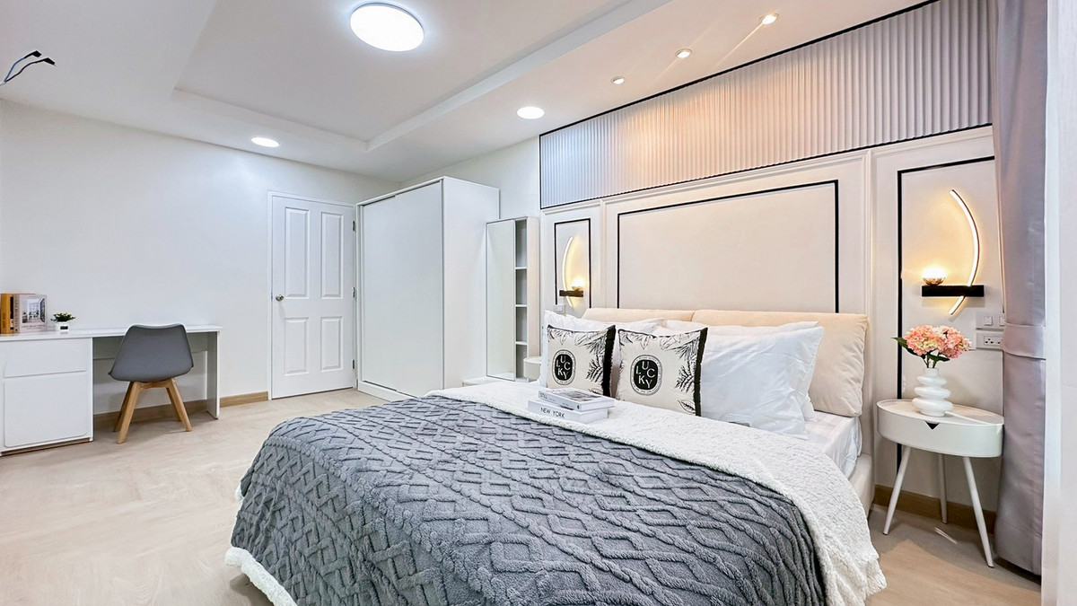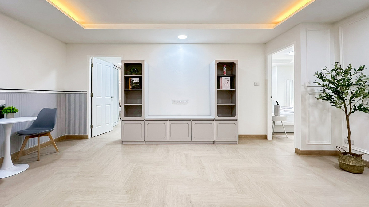 Happy Condo Rachada 18 project only 5 to MRT Huai Khwang ❣️ 2 bedrooms, 2 living rooms ❣️ Kitchen ❣️ Size 80 sq m ✅/ Water bill 18 baht per unit ✅ Electricity according to Luang Room comes with furnit