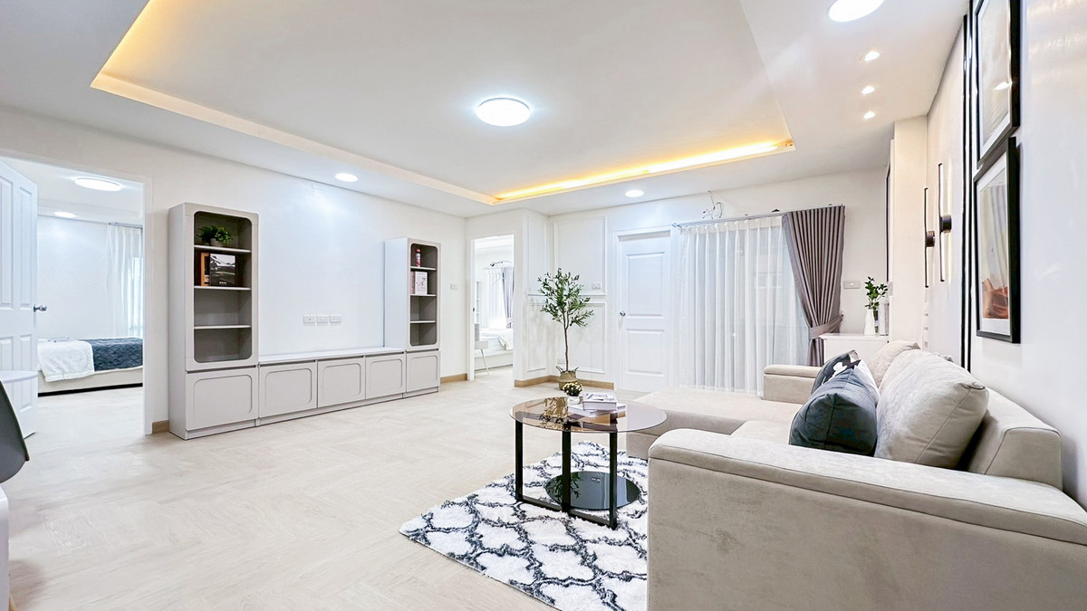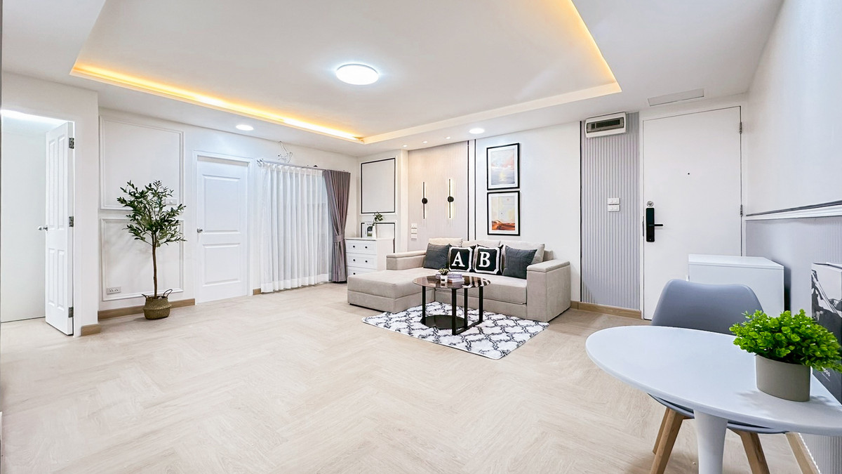 Happy Condo Rachada 18 project only 5 to MRT Huai Khwang ❣️ 2 bedrooms, 2 living rooms ❣️ Kitchen ❣️ Size 80 sq m ✅/ Water bill 18 baht per unit ✅ Electricity according to Luang Room comes with furnit