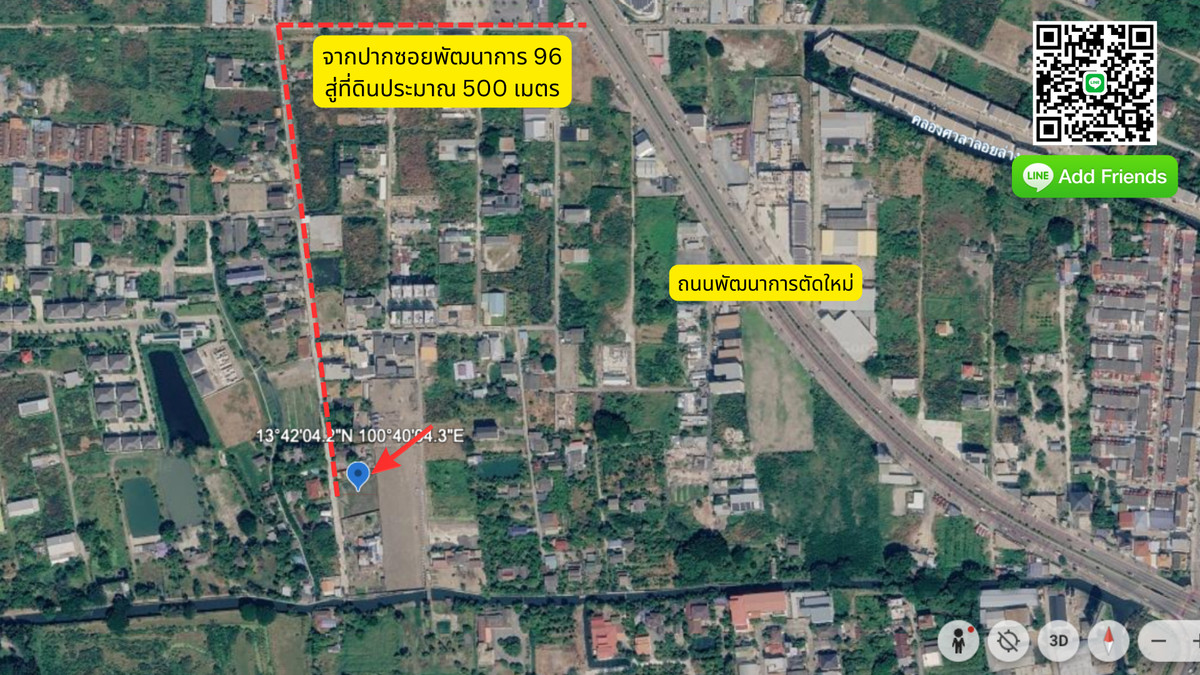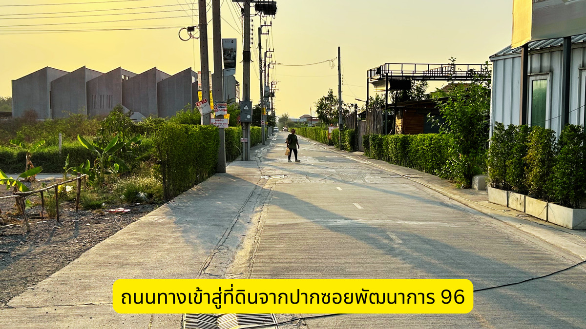 🏡 Looking for land to build a dream home close to the city but still having peace and being an asset to store value in the future? This plot... It may be the answer youve been waiting for. ❤️ ━━━━━━━━━━━━ 📍 Location & Location Soi Phatthanakan 96 (On Nut 66, Intersection 19-12-1-2) • Enter the alley from the main road only 500 meters to the land plot • The road in front of the land is 5 meters wide and cars can easily pass it. Land facing "West" The atmosphere is a residential community, quiet, not crowded, but a few minutes drive to the main road ━━━━━━━━━━━━ 📐 รายละเอียดที่ดิน ประเภท: ที่ดินเปล่า