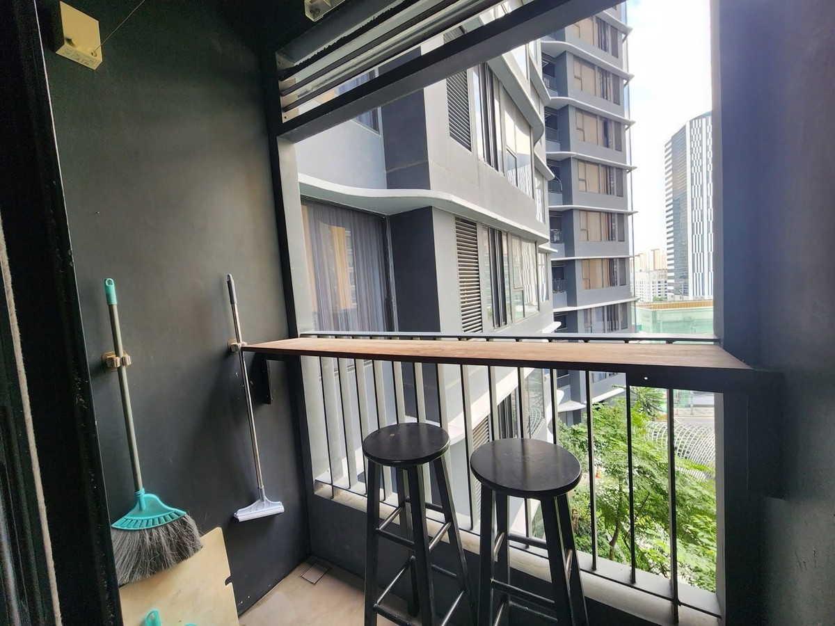 Ideo mobi asoke Studio room size 27 sq m. The kitchen has a door separating the zone. There are electrical appliances. Air conditioner, refrigerator, TV, water filter, hot water (1 car parking space)