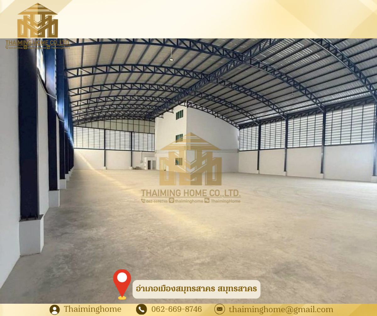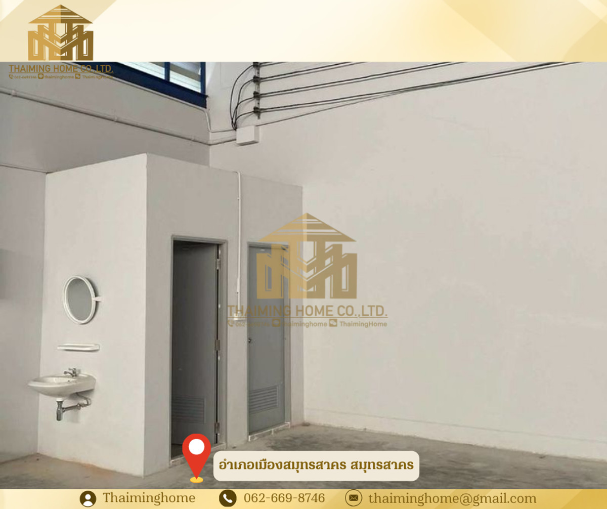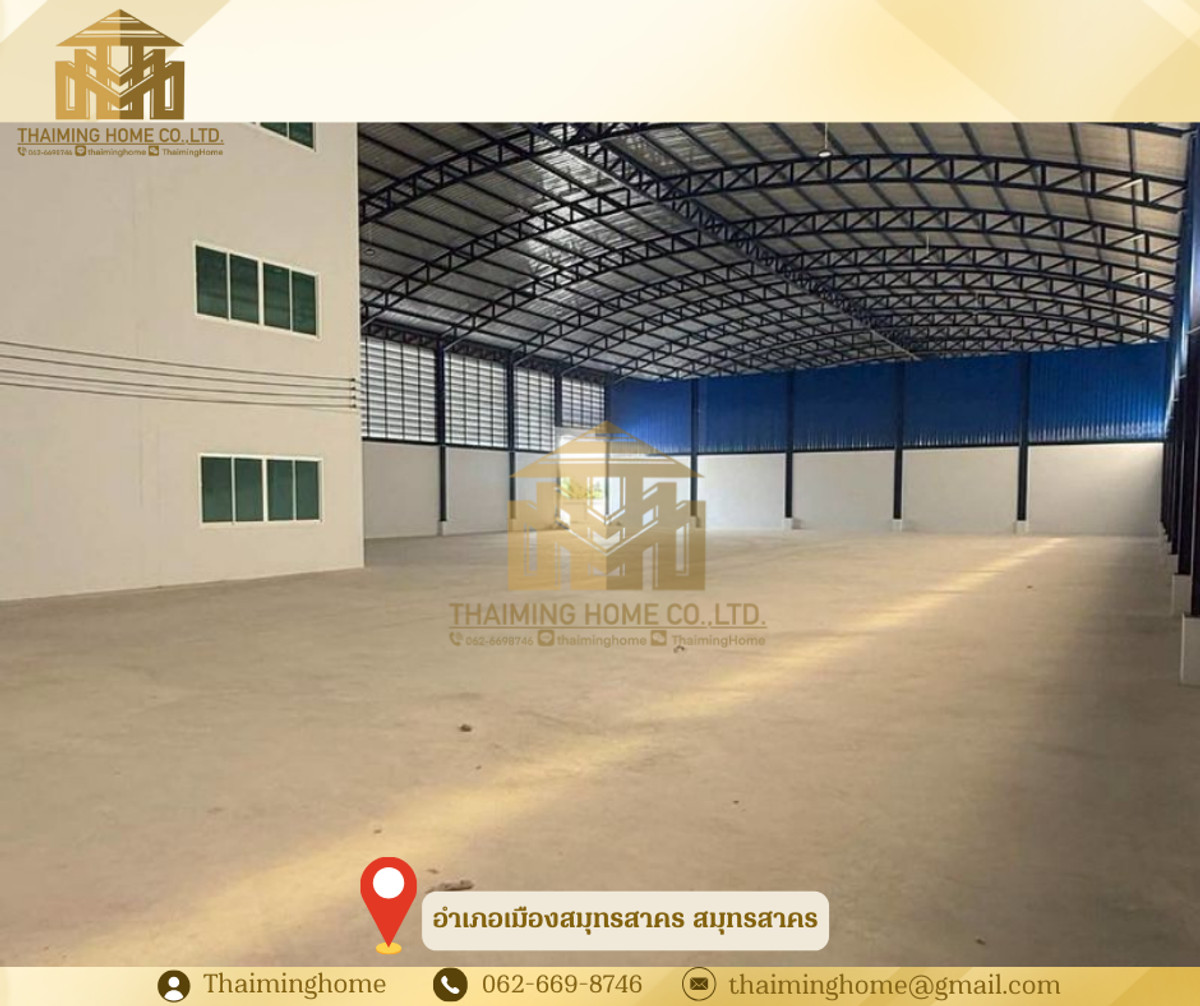 Warehouse for rent in Samut Sakhon, 2,500 sq.m., divided into 2 warehouses Mueang Samut Sakhon District (Property Code TW06-0526) Details ✅ Can be rented separately 👉 Large Warehouse - Warehouse area: 1,100 sq.m. - 3-story office area: 498 sq.m. 👉 Small Warehouse - Warehouse area: 710 sq.m. - 2-story office area: 228 sq.m. -------------- - Total area: 2,500 sq.m. - Warehouse floor can support 3 tons/sq.m. - Equipped with a 3-phase 250 kva transformer - Trailer trucks can access the property Nearby locations - Big C Mahachai - Ekachai Hospital - Mahachai Market Rental Conditions - 3-year lease agreement - 2 months security deposit - 1 month advance payment - Monthly rent: 250,000 THB/month ----------------------- บริษัท ไทยหมิง โฮม จำกัด Thaiming Home Co.,Ltd. 泰明房园 房产公司 ----------------------- Contact ติดต่อ : Contact number Contact : Contact number คุณหมิง(中文) Line ID: thaiminghome Line ID: @thaiminghome https://lin.ee/PkkHwYv Wechat : ThaimingHome E-mail : Contact email -----------------------