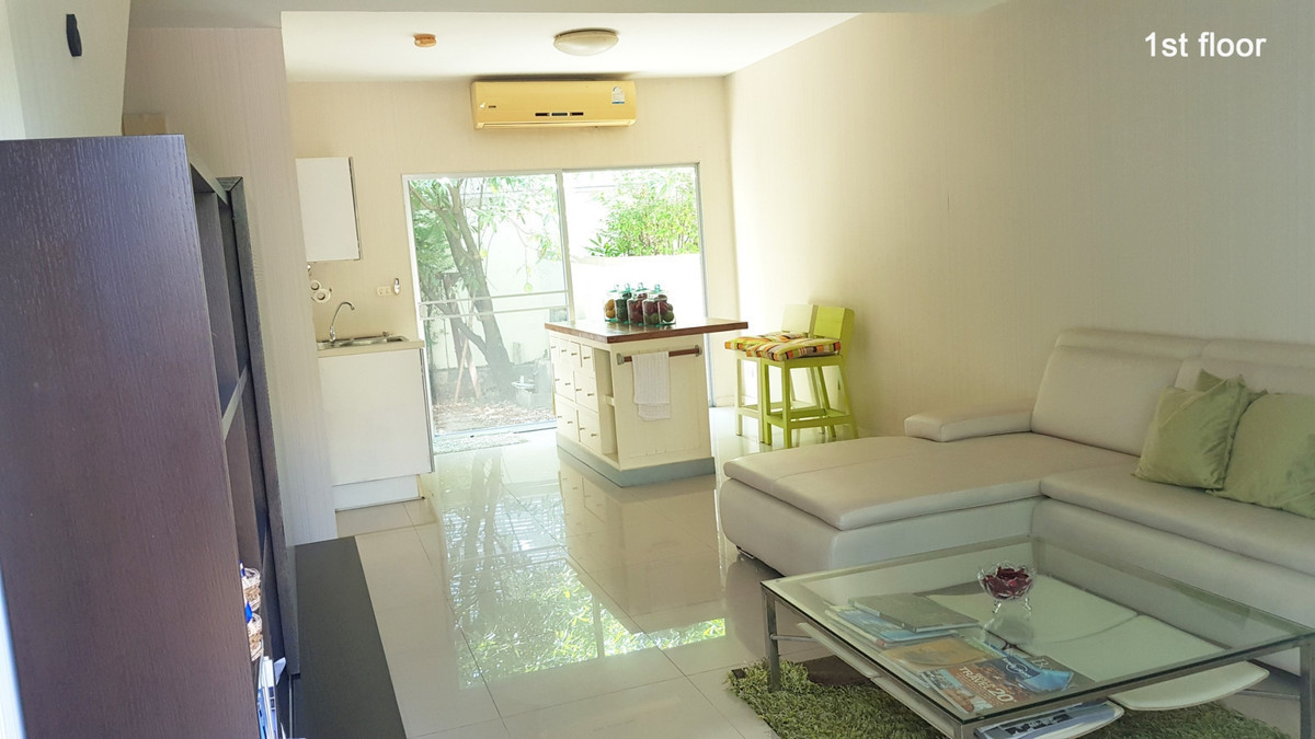 🏡For rent, 3-story townhome with furniture, near airport link Ban Thap Chang station. Near Brighton International School, Wellington ( N1-848 ) In the village project "New house" Rama 9-Wongwaen Good quality house from Land&House 💰Rent 25,000 baht/month💰 Usable area 180 sq m., house area 36 sq m. (other townhomes in the project The area will be approximately 20-22 sq m) - 3 bedrooms🛏️ 3 bathrooms🚽 - The ground floor is a common area. For sitting, eating, cooking - Comfortable living, very well ventilated ✅ - In front can park 2 small-medium cars (can park another 1 car in front of the house🚗 - There is a rock garden in front of the house. There is a coffee table to sit and relax. There are trees blocking it from the front to increase privacy - The backyard has artificial grass. It is a multi-purpose yard. There is a shady sitting corner. There is a counter that can be used as a Thai kitchen. There is a cement area for washing in the back. - The house is at the back of the project. (It is a special house, 1 of the 3 largest houses in the project) There is privacy - in front of the project there is a playground - Clean and safe project with security guards 24 hours a day 📍Location - 5 minutes from (2.7 km) from Wellington International School Bangkok -11 minutes from (5.9 km) from Brighton College Bangkok International School 📍Near the conveniences, there is Tops Deli in front of the alley (2 minutes from the village) (750 m) The area surrounding Tops has restaurants, bubble tea shops, and more. From Tops Deli, you can take the footbridge across the road to the airport link at Thap Chang Station to ride into the city. Or take a ride to the airport conveniently Within a 10-minute travel distance, there are large-sized Lotus, Tops Marketplace, Starbucks, The Park Community Mall. - There is a laundry shop nearby that provides home delivery service. - The project is not far from the fresh market, shops, pharmacies, restaurants, good cafes around _______________________________ #If interested, contact to inquire anytime ♦️𝐓𝐞𝐥 : Contact number (K. Boss) ♦️𝐓𝐞𝐥 : Contact number (K. Mona)♦️𝐋𝐢𝐧𝐞 𝐎𝐟𝐟𝐢𝐜𝐢𝐚𝐥 : @045vtchl ♦️𝐂𝐥𝐢𝐜𝐤 : https://lin.ee/YbrIYmgC ♦️ #CorrectProperty_______________________________