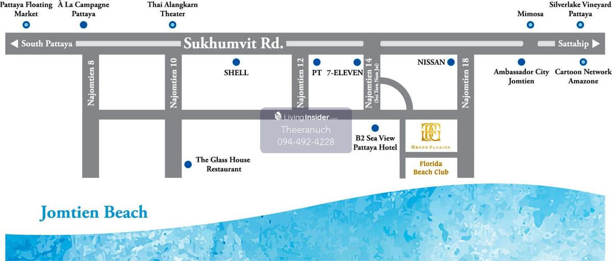 [FOR SALE/RENT] Beachfront Luxury Condo - The Grand Florida Pattaya 1 Bedroom | 47 Sq.m. | Fully Furnished | Ready to Move In / High Investment Potential ------------------------------------------------------------------------------------------------------- Experience high-end resort living at The Grand Florida Beachfront Condo Resort Pattaya. Located on the pristine Jomtien-Na Jomtien beach with direct private beach access! ---------------------- [ Unit for SALE ] Unit: Building B, 1st Floor (Room B104) Size: 47 Sq.m. (Spacious layout, feels like home) Type: 1 Bedroom / 1 Bathroom Selling Price: 6,000,000 THB (Transfer fee 50/50) Highlight: Fully furnished with all appliances. Perfect for personal residence or as a high-yield investment property. --------------------- [ Unit for RENT ] Unit: Building B, 1st Floor (Room B103) Size: 47 Sq.m. Type: 1 Bedroom / 1 Bathroom Rental Price: 25,000 THB / Month (1-year contract) Condition: 2-month security deposit + 1-month rent in advance Highlight: Beautifully decorated, fully equipped, and ready to move in today! --------------------------------------------- Status: Both units are vacant and available for viewing. Prime location, attractive pricing, and highly sought-after by foreign tenants. ------------------------- Project Facilities: Massive Wave Pool and tropical landscape surrounding the project Premium Clubhouse, Fitness Center, Game Room, and Library 24-Hour Security & CCTV with ample parking Direct Private Beach Access ------------------------------------------- Contact for more information or to schedule a viewing: Contact: K. Nuch (คุณนุช) Tel: Contact number Line ID: theeranuch_thee ==================