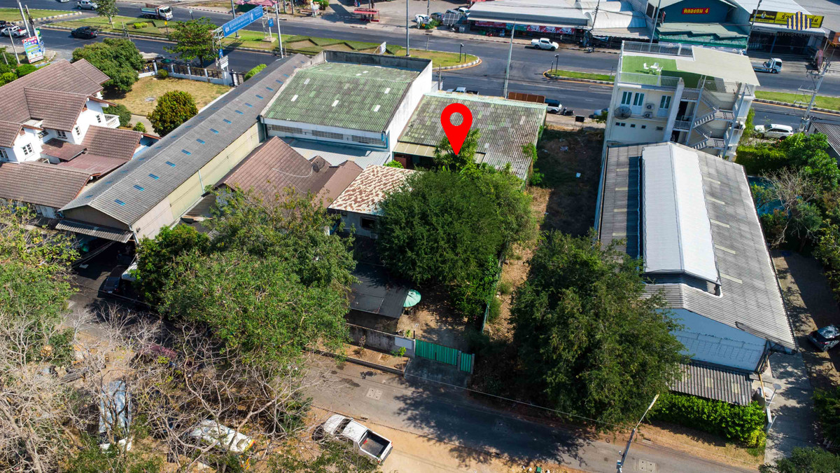 Prime commercial location! In the heart of Kanchanaburi city! For sale: Land with garden house, 189 sq.wah, pink zoning, frontage on 2 roads!! Located on Saeng Chuto Road near the intersection to the Bridge over the River Kwai, Kwae Yai Road.