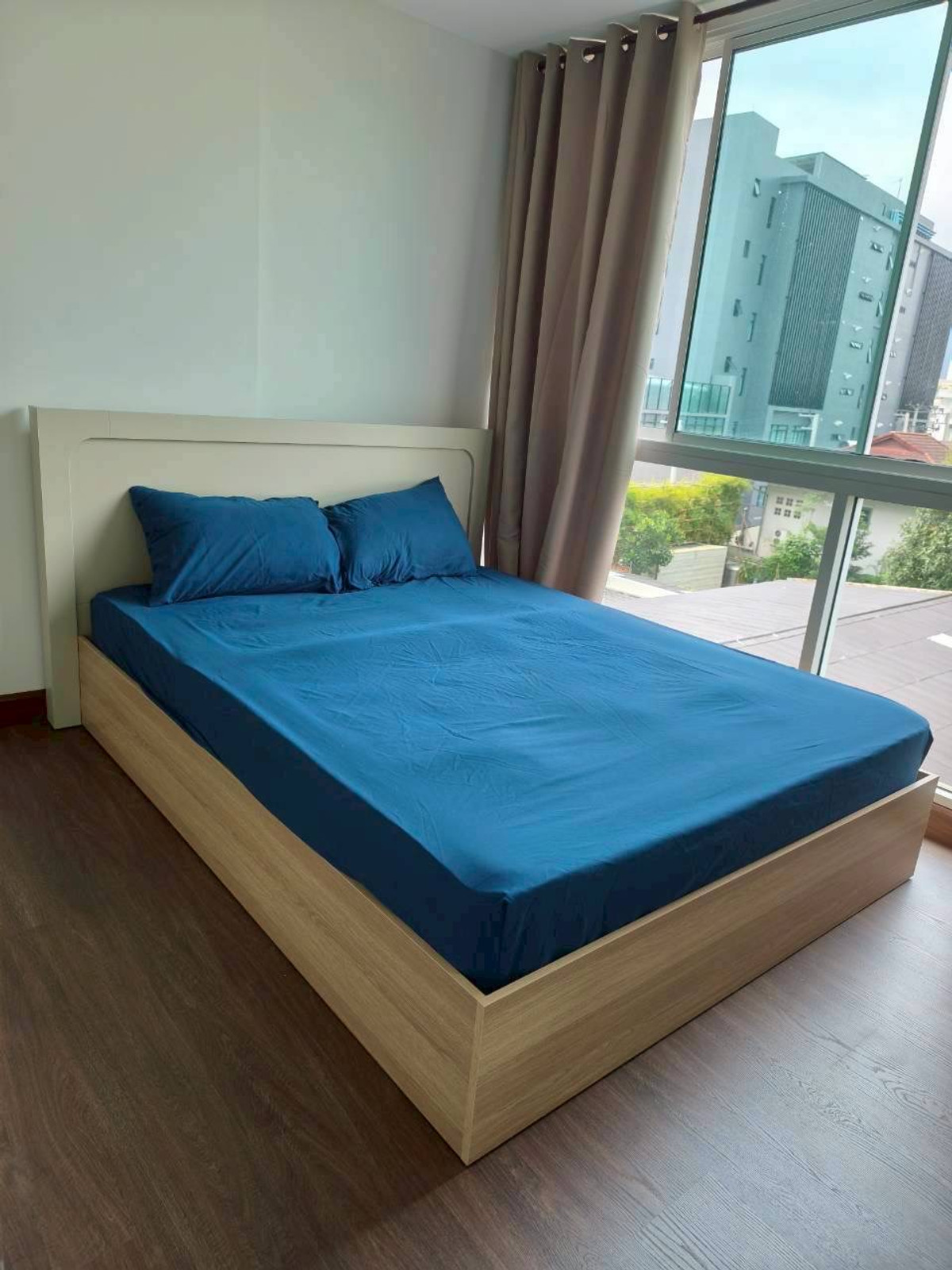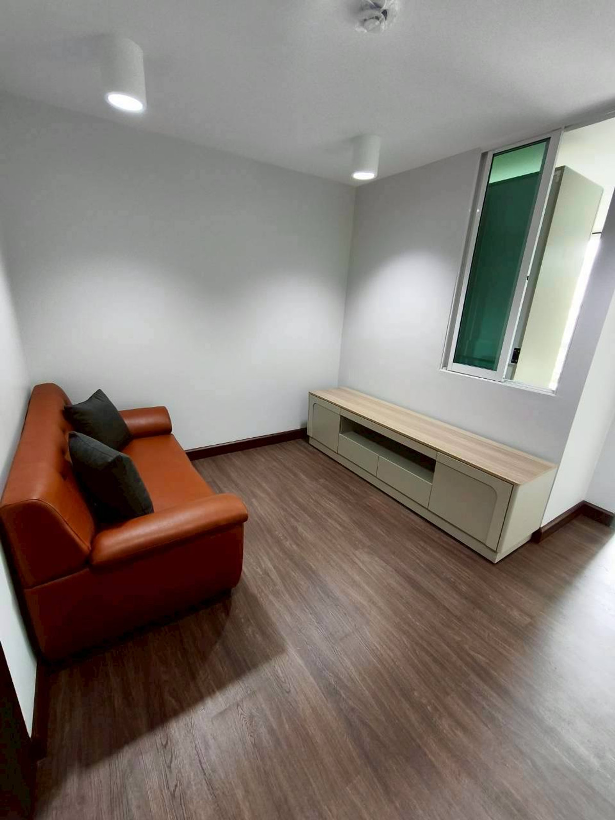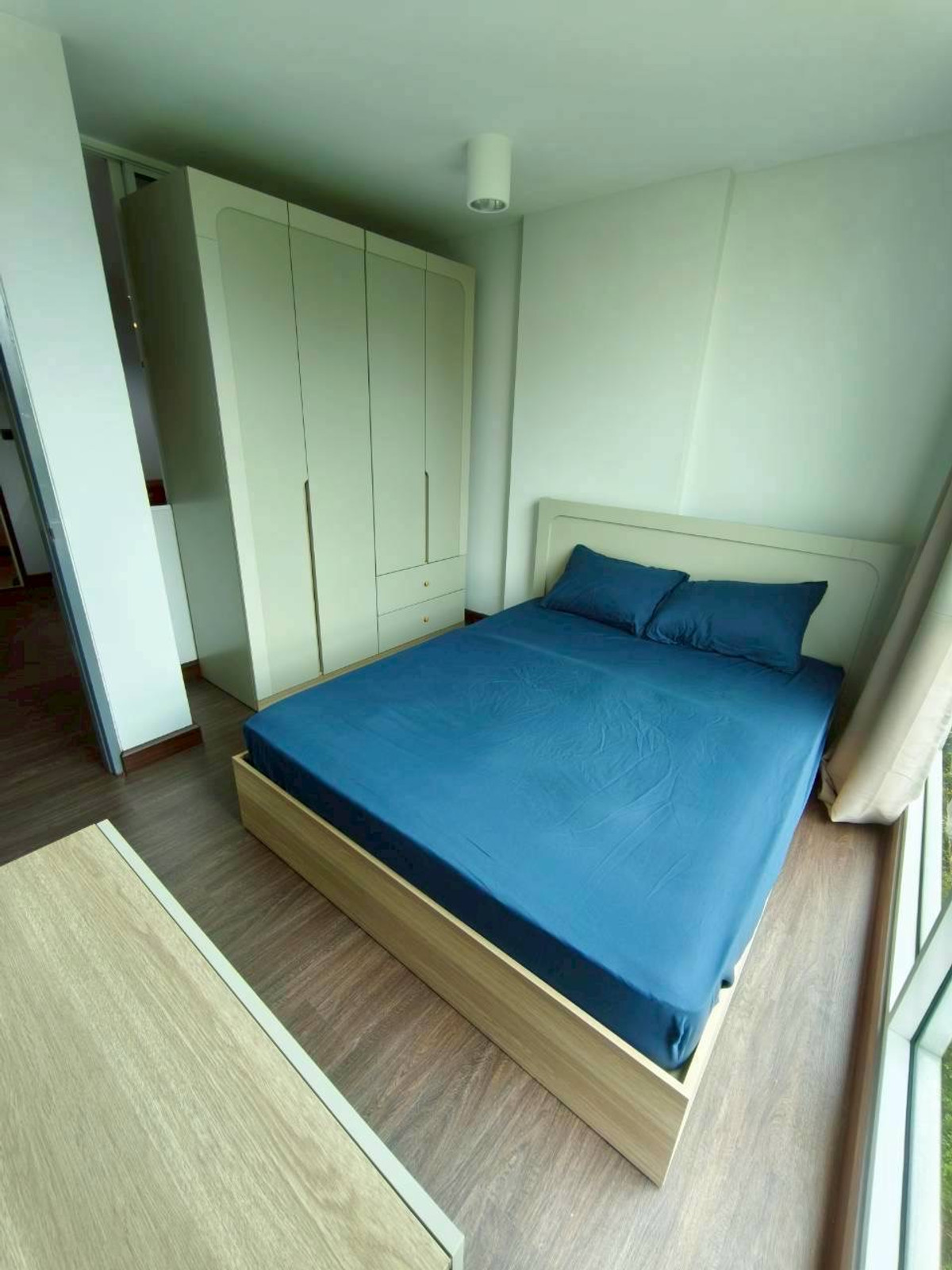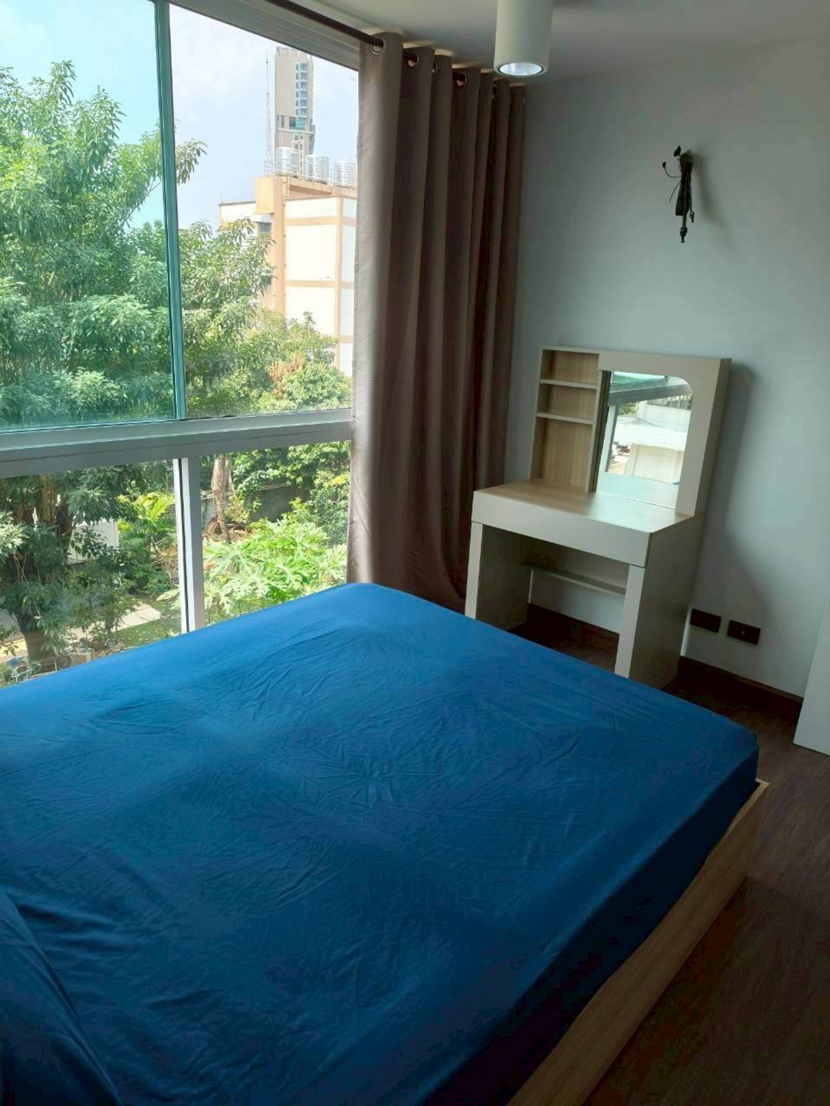 The room is divided into 1 bedroom, 1 living room, 1 kitchen, 1 bathroom , there is a balcony at the back of the room, 1 air conditioner, in the bedroom the kitchen has an electric stove. and exhaust