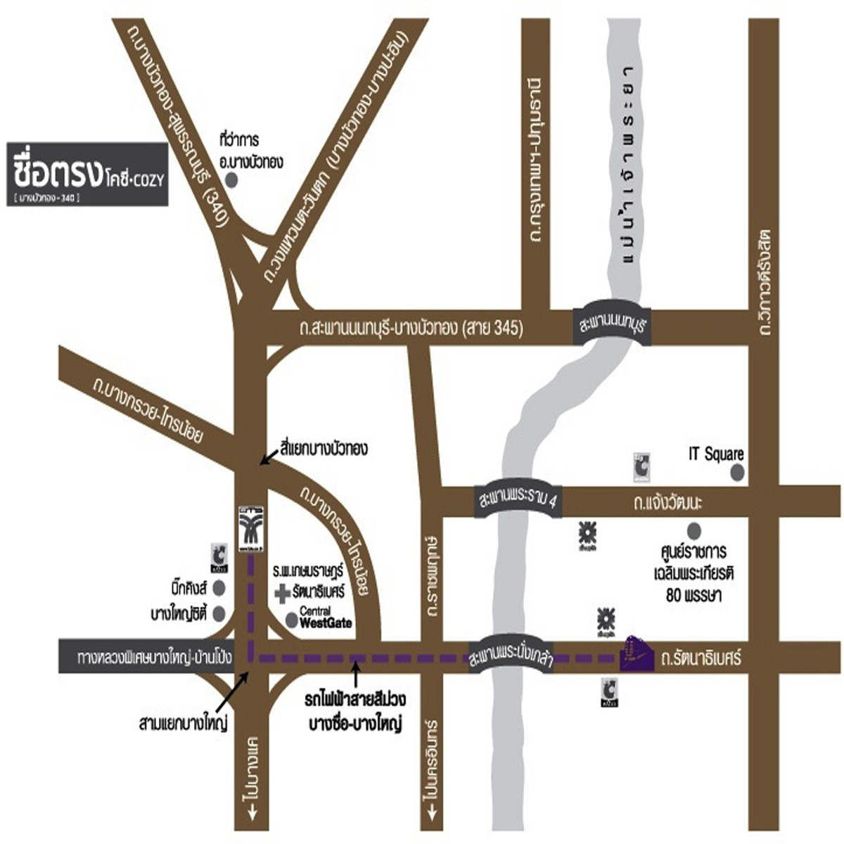 For sale cheap, detached house 78.4 sq m. Suetrong Cozy Village, Bang Bua Thong-340 (Bang Yai), Phase 5, ready to move in, free loan arrangement . 2-storey detached house, size 78.4 square wah, usable area 250 square meters , 3 bedrooms, 3 bathrooms, 1 kitchen, 1 living room, 2 parking spaces .- Free 3 air conditioners - Flooring material: ground floor-granitto / upper floor- laminate - Front of the house faces southwest - Common fee/month 2,340 baht/month - Property age 9 years . Property location: Suetrong Cozy Village, Bang Bua Thong-340 (Bang Yai), Phase 5, Lahan Subdistrict, Bang Bua Thong District. Nonthaburi Province - The village is next to the main road 340, connecting to Kanchanaphisek Road. Rattanathibet near Kanchanaphisek Ring Road intersection - there is a large market in front of the village. Food is very easy to find - easy to enter and exit the city. Travel into the city With Kanchanaphisek Road and travel out of the city via Bang Bua Thong-Suphan Buri Road. which is a road larger than 8 lanes that cuts in front of the village project - 10 minutes to the Purple Line. Khlong Bang Phai Station (9.4 km.) - Price negotiable - Free loan arrangement service by professionals . Project amenities - Public park - Swimming pool - Entry-exit Access Card Control system - CCTV- Security 24 hours . Nearby places - Bang Bua Thong District Office 1.3 km. - Do Home Bang Bua Thong 4.4 km. - Sombat Buri Market 4.9 km. - Lotus (Bang Kruai-Sai Noi) 5.2 km. - Makro Bang Bua Thong 7.0 km. - Central Westgate 11 km.. If interested, contact Khun Boo phone number Contact number / Contact number / Contact number
