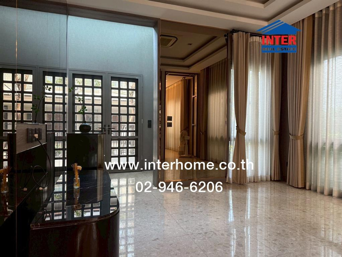 Mr. Kornpassorn Kankunseth (Lek) Contact number: Contact number Office: Contact number Inquire via Line. https://lin.ee/xTo07Pn Line ID: @interhome Property code: 66466 Size 82 sq m Location: Grand Bangkok Boulevard Village. ถ.ศรีนครินทร์ เขตประเวศ กรุงเทพมหานคร Details Near Makro Srinakarin 2, Seacon Square Mall, Paradise Park Mall Grand Bangkok Boulevard Village. 2-story detached house for sale 2-story detached house for sale near MRT Yellow Line. Soi Srinakarin 38 Srinakarin Road, Nong Bon Subdistrict, Prawet District, Bangkok 2 floors high, 4 bedrooms, 5 bathrooms, 2 kitchens, 1 living room, 1 maids room + bathroom , parking for 3 cars Decoration The ground floor has marble tiles. The upstairs floor is wood The bedroom has built-ins. Built-in living room Kitchen, built-in kitchen Beautifully decorated house, ready to move in, 9 air conditioners , nice project of SC Asset, complete with utilities , fitness Club swimming pool , underground wiring system , common garden , 2-level security system , automatic entry-exit system CCTV security guard Good location, nearby places Makro Srinakarin 2 Seacon Square Mall Paradise Park Mall, Thainakarin Hospital , Vibharam Hospital , Triam Udom Suksa Pattanakarn School , Ramkhamhaeng University 2 Convenient travel on many routes Srinakarin Road Phatthanakan Road On Nut Road (Sukhumvit 77) Udomsuk Road (Sukhumvit 103) Bangna-Trad Road, MRT Yellow Line, Srinakarin Station 38 Interhome Realty Estate Company Limited Interhome Realty Estatewww.interhome.co.th Tel. Contact number https://www.interhome.co.th/propertydetail.php?propcode=66466