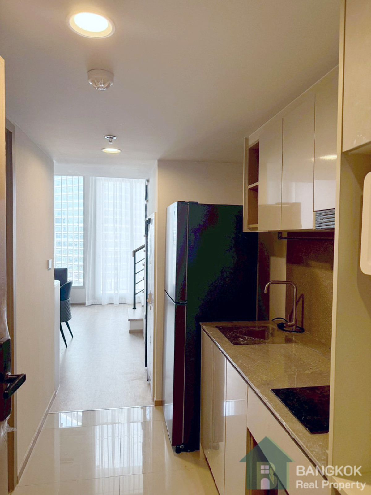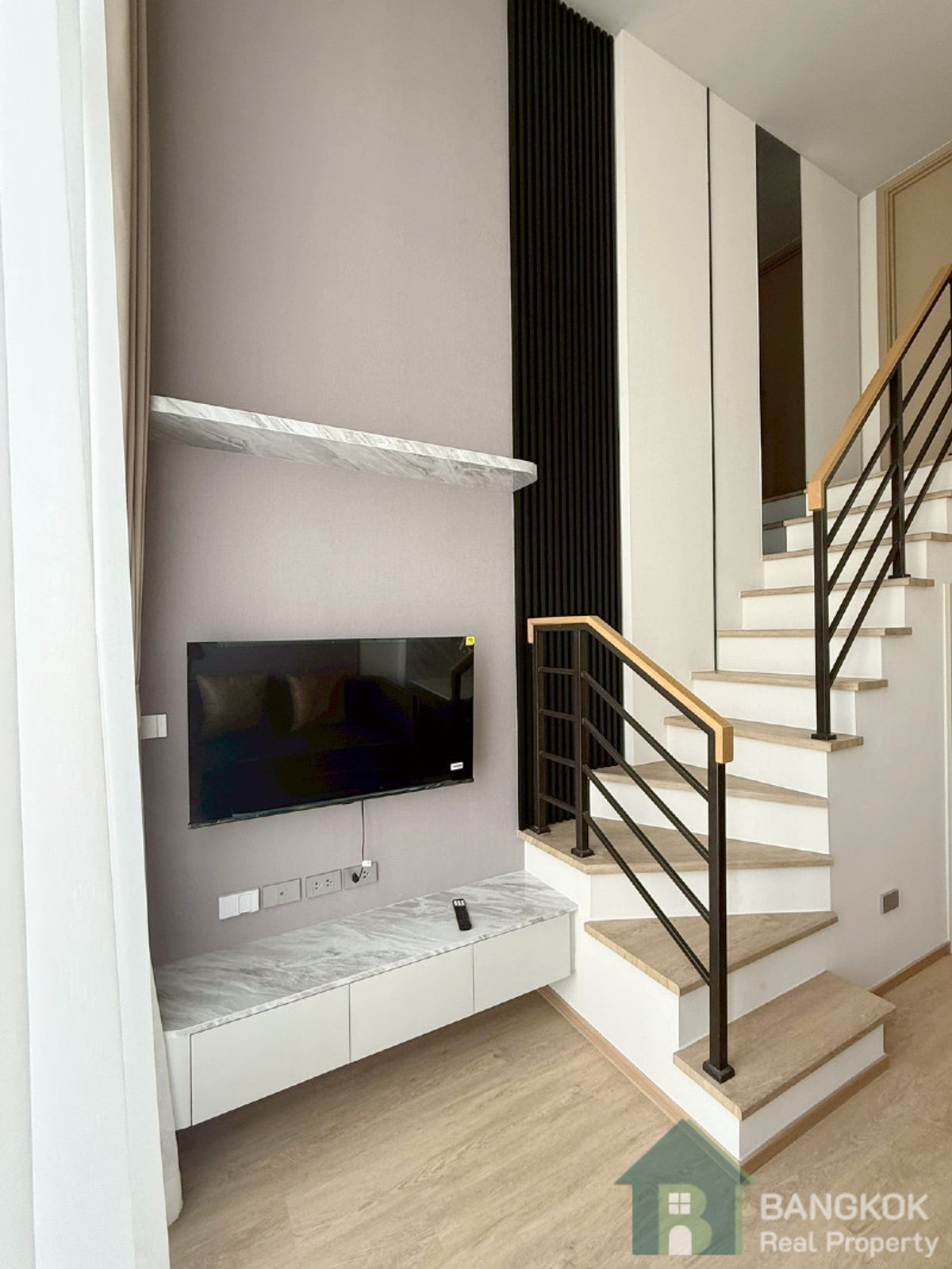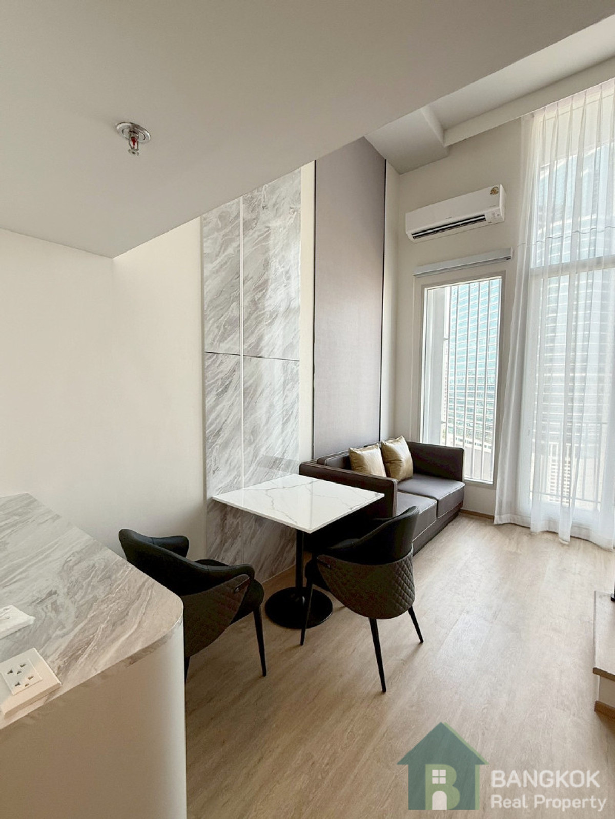 Brand new loft style duplex 1 bed 1 bath 35 sq.m now available to rent at Culture Chula. Located on upper floor 10+, fully furnished duplex with un-blocked city view Just completed in 2025 by Ananda i