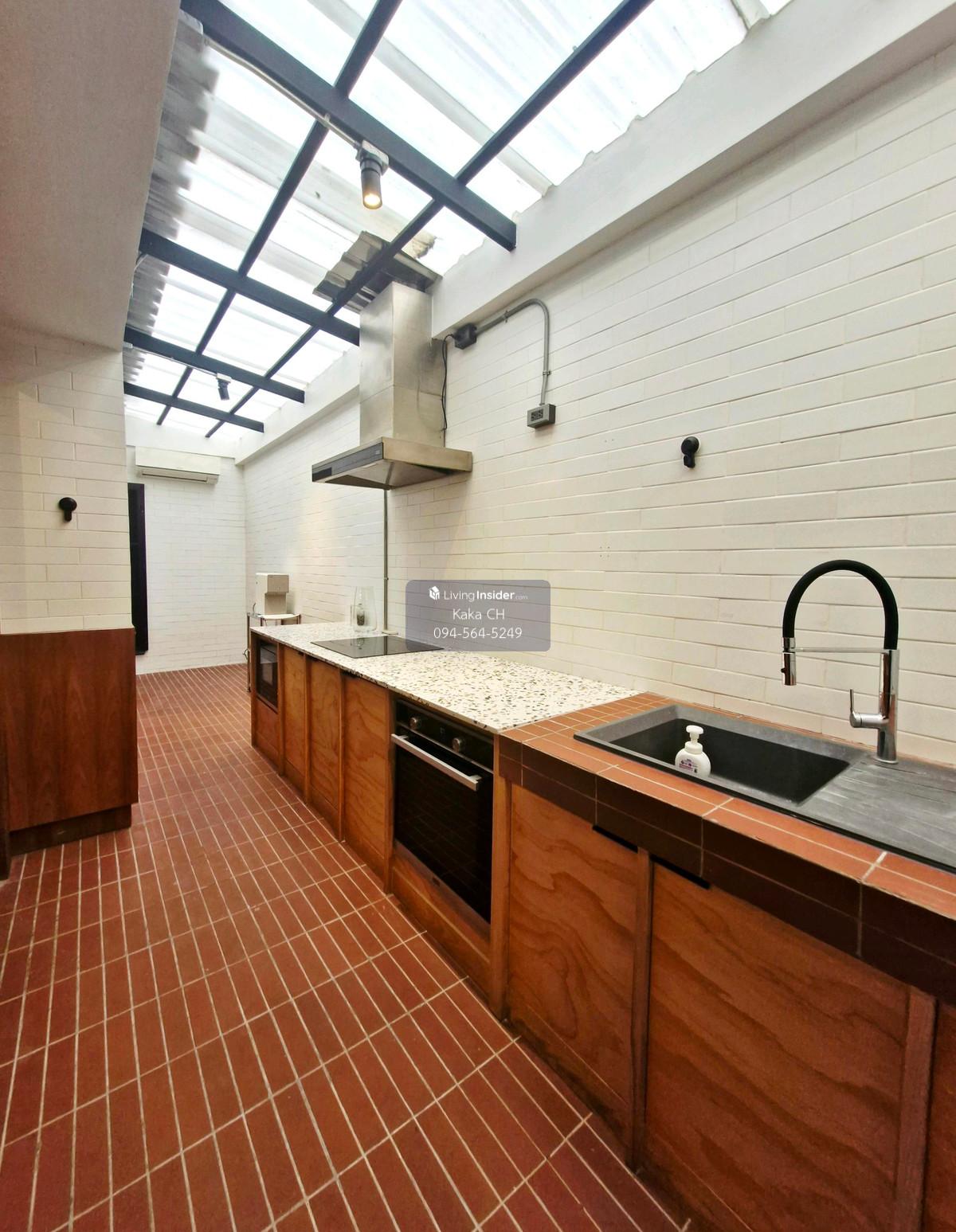 (For Rent🔥) Commercial Townhome in Soi Ekkamai 12 | 250 SQM | Ideal for Home Office, Cafe, Spa, or Airbnb | Pet & Business Friendly 🐶🐱 With its unique mid-century modern aesthetic, this property is the perfect foundation for 🌟 Home Office/Cafe/Spa/Airbnb Business. 🚀 Property Highlights : - Generous Space : 250 sq.m. of usable area on a 33 sq.w. plot. Features a wide, open-plan ground floor with warm terracotta tiles and a spacious upper floor with wooden flooring. - Stunning Design Features : Eye-catching arched facade and balconies. - Brand New Kitchen & Bathrooms : Fully renovated, sunlit kitchen featuring a modern terrazzo countertop and skylight roof—perfect for F&B preparation or a staff pantry. - Valuable Parking: Accommodates up to 3 cars (2 inside the gate, 1 outside)—a true luxury in Ekkamai 📍Prime Location : - Located in Ekkamai 12, offering seamless connectivity to Thong Lo, Pridi Banomyong, and Sukhumvit Road. Surrounded by high-end residential projects, renowned dining spots, and a massive expat demographic. Rental Price : 90,000 THB / Month (Minimum 1-year lease, Open for Business Registration contract) Contact for a private inspection today : Tel/Line/Whatsapp : Contact number (Kaka)