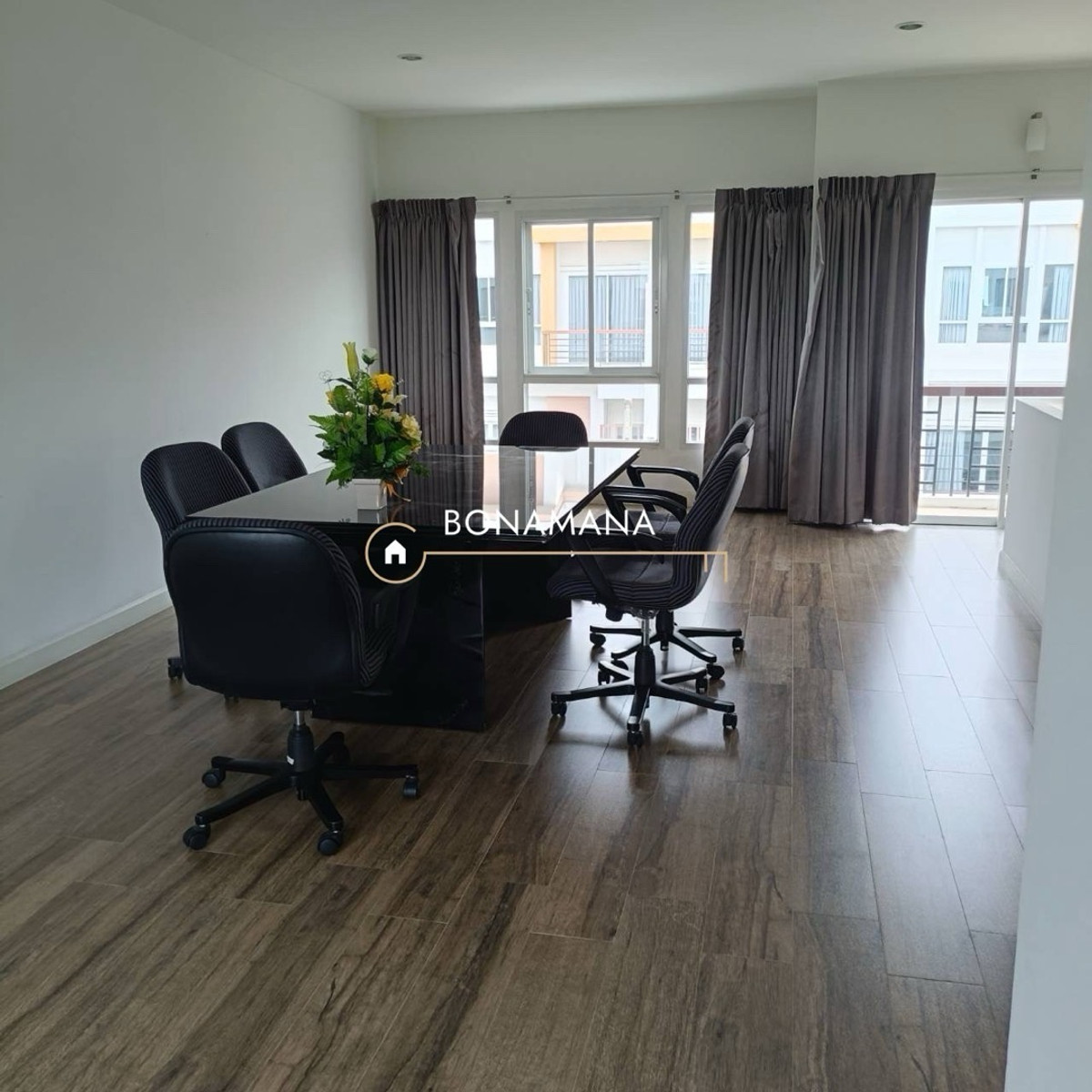 Townhome/home office for rent Kaset-Nawamin (Soi Mayalap) Land 23 sq m., usable area 200 sq m. 3 floors, 3 bedrooms, 3 bathrooms, 1 living room Parking for 3 cars Townhome, very nice to live in *** Its an empty house. There is an air conditioner and curtains provided *** *** You can register a company and can deduct withholding taxes *** Very comfortable travel. Facilities : Garden, public park : 24-hour security system : CCTV camera system to monitor vehicles entering and exiting the project Rental price 29,000 baht/month Deposit 2 months, 1 month in advance If interested, contact Khun Tang: Contact number Line ID: @bonamana Whatsapp: Contact number