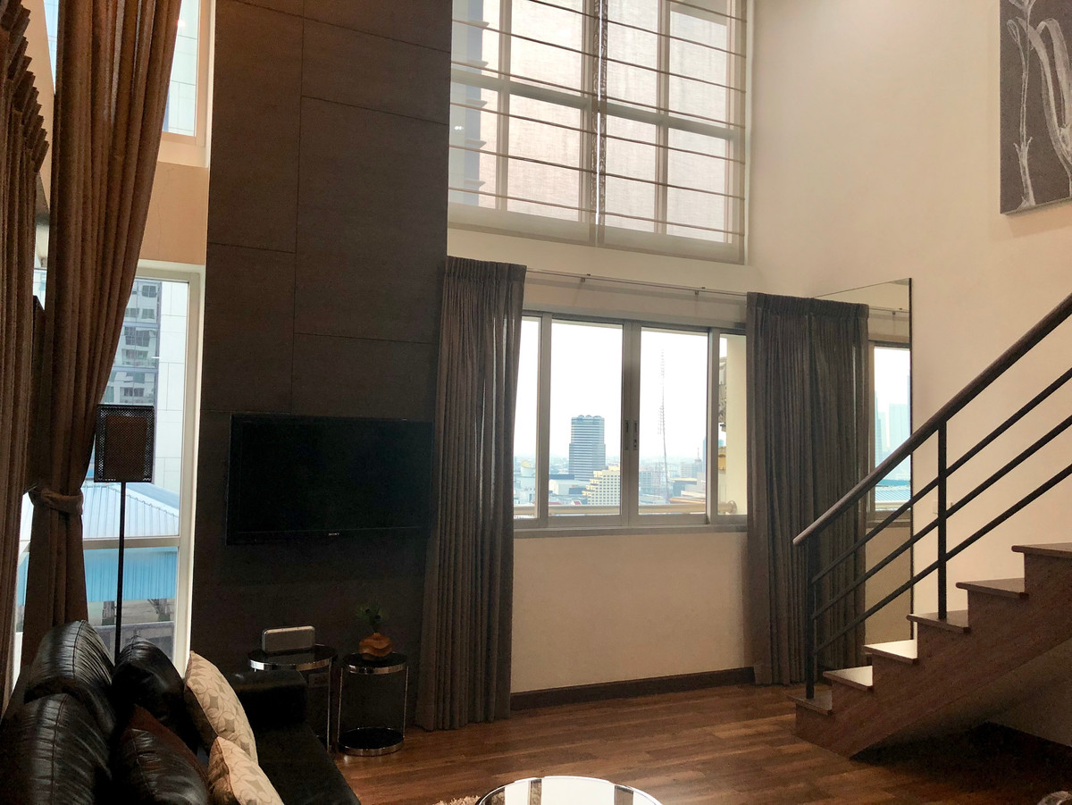 Condo for sale at The Ratchadamri only 200 meters from BTS Ratchadamri Duplex unit 58 sqm on 26th floor 1 duplex bedroom 2 bathrooms bathtub on upper floor High ceiling bright and airy fully furnished