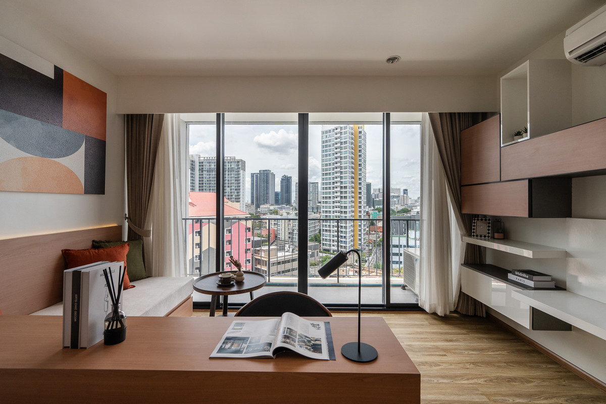 The Issara Ladprao, studio 34 sq m, high floor, next to the main road.
