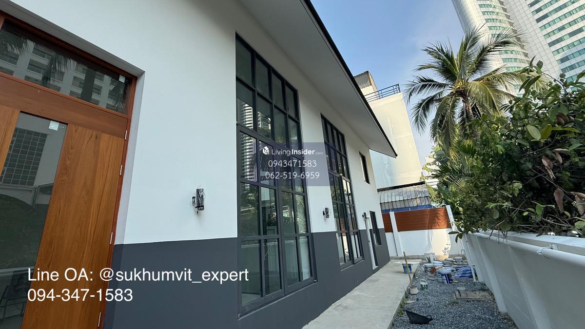 Luxury House for Rent in Sukhumvit 16 — Ideal for Business Use Prime location in Sukhumvit Soi 16, perfect for operating a restaurant, café, spa, or wellness business in a private, upscale setting. Land Area: 112 sq.wah (≈ 448 sq.m.) Usable Area: 170 sq.m. Parking: Up to 4 cars Building Details Width: 7.8 meters Depth: 20.2 meters Rectangular layout Impressive ceiling height of 6 meters (floor to ceiling) — airy and luxurious atmosphere Interior Layout Spacious front hall / reception area Glass-wall room with natural light (ideal for dining, lounge, or treatment space) Staff restroom Storage room Separate male & female customer restrooms Lease Terms Rent: 200,000 THB/month Minimum lease: 3 years (renewable) Security deposit: 6 months Advance rent: 1 month Contact Line: @sukhumvit_expert Tel: Contact number (Ton)