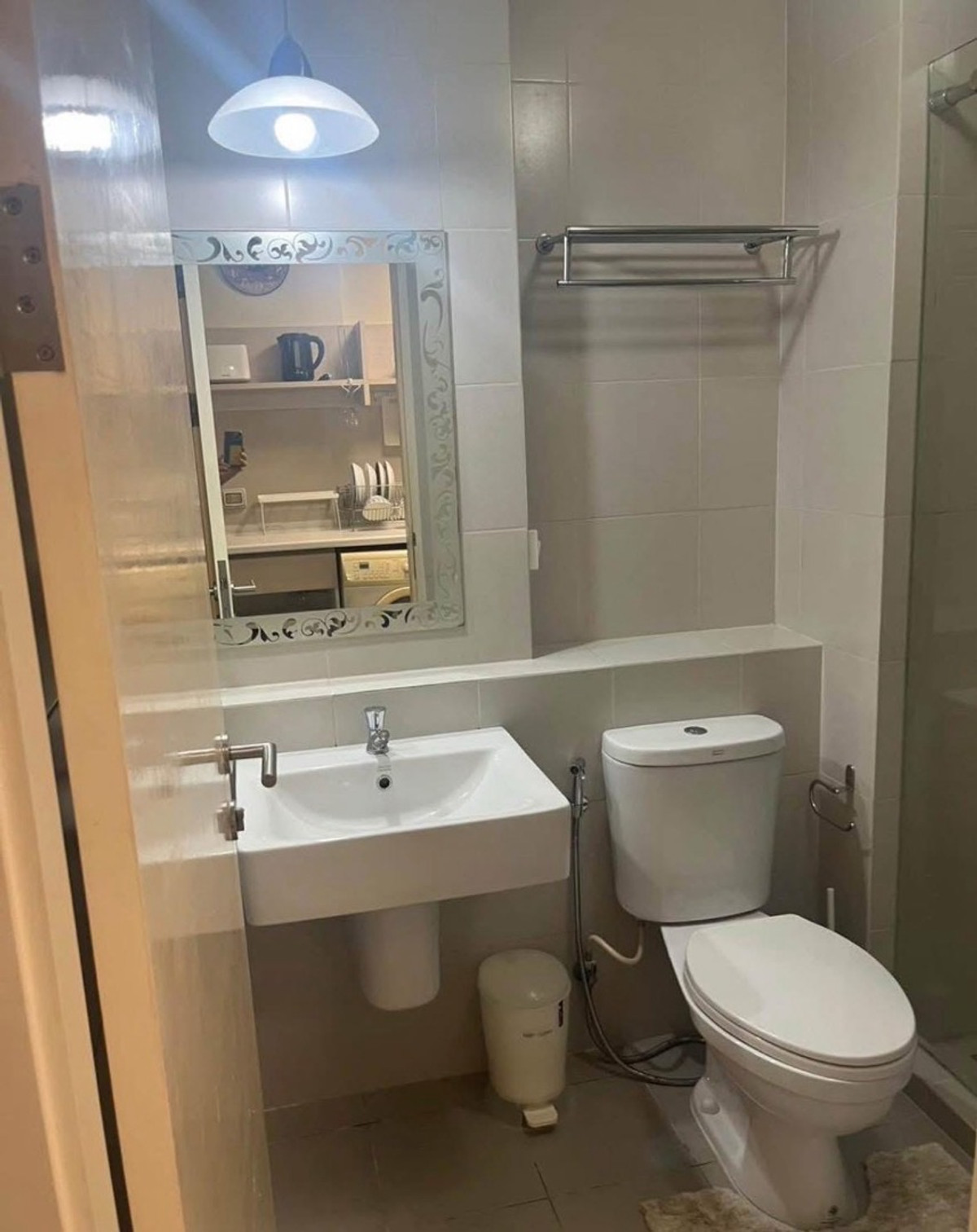 For rent Aspire. Ladprao 113 26sq.m, furniture and electrical appliances as shown in the picture, rental price 10,000.-per month, common fees included 2 months deposit, 1 month in advance, 1 year contract Tel: Khun Dao Contact number Facilities -salt system swimming pool -fitness -CCVT Entry and exit inside every floor - Security. 24 hours -Lobby.,Mailbox -Garden., Green area around the project Electrical appliances - Smart TV - Front loading washing machine - Air conditioner - Microwave - Water heater - Refrigerator