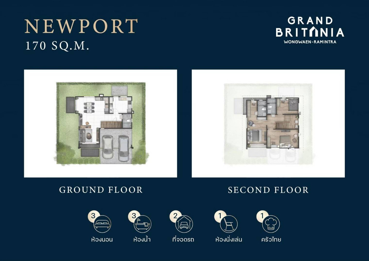 Project name Grand Britania Wongwaen – Ramintra Grand Britania Wongwaen – Ramintra The project is located Kanchanaphisek parallel road Khlong Sam Wa District House type Newport, 2-storey detached house Standard land 50.5 sq m, usable area 170 sq m Functions: 3 bedrooms, 3 bathrooms, 2 parking spaces House near garden zone Amenities Grand Britania Club Function Room Kids Room Swimming Pool Fitness Yoga Room Basketball Court 2 large public parks Playground Close to 2 expressways Chalongrat Expressway: Expressway entering Rama 9 - Ekkamai, coming out to Ramintra zone Kanchanaphisek Ring Expressway: Kanchanaphisek Ring Road Easy to travel anywhere. Close to the expressway , can make an appointment to see the house Urgent sale, owner sells it himself, very good price, negotiable If interested, chat or call. Khun Pipim Contact number