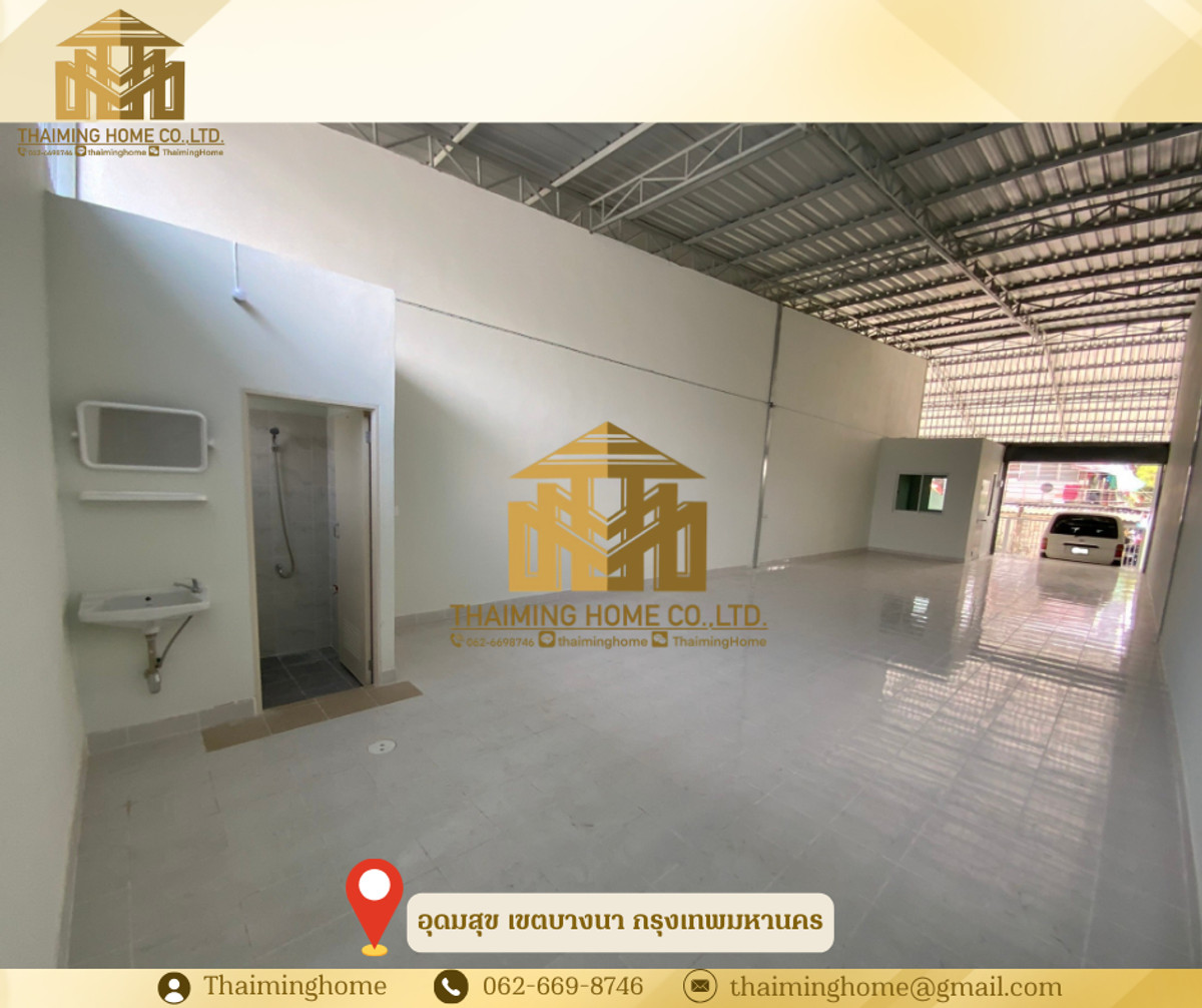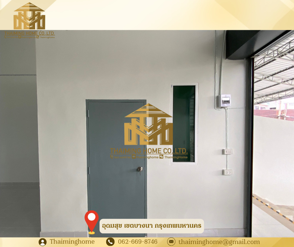 let a warehouse/storage of 135 sq.m. Udom Suk, Bangna District, Bangkok [TW5-300226] ✅ Details • The total usable area is 135 square meters. M. • 90 square meters of warehouse space. M. (5 × 18 m). ) • Parking area in front of the warehouse is 45 square meters. m (5 × 9 m) ) • There's an office inside the warehouse, 2 × 3 meters. • Built-in bathroom (complete: toilet / urinary / shower / washbasin) • Loading Dock, raised floor, 60 cm. The trunk of the pickup is conveniently located. • ❌ Inaccessible (tiled floor) of 6 wheels/trailer ✨ Worth a good location near Sukhumvit Road, Srinakarin Road, Bangna-Trad Road ✨ 🚇 Nearby Locations • Central Plaza Bangna • Seacon Square • Thai Nakarin Hospital / Bangna 1 Hospital • Electric train: Close to BTS Udomsuk Station and BTS Punnawithi Station. • Expressway: It is easy to connect to Bangna Expressway and Kanchanaphisek Expressway. • Main roads: Multiple access and exit routes including Sukhumvit Road, Srinakarin Road and Bangna-Trad Road. • Suvarnabhumi Airport ☑️ Purchase/Rental Conditions • a one-year minimum contract • Two months' deposit, one month's advance. • 💰 Rent is only 19,000 baht/room/month —————————————————————— บริษัท ไทยหมิง โฮม จำกัด Thaiming Home Co.,Ltd. 泰明房园 房产公司 ———————— Contact : Contact number คุณหมิง(中文) Line ID: thaiminghome Line ID: @thaiminghome https://lin.ee/PkkHwYv Wechat : ThaimingHome E-mail : Contact email ————————————————