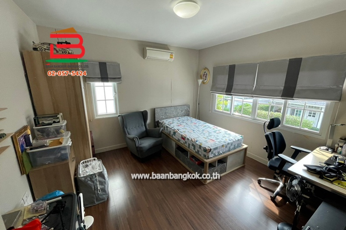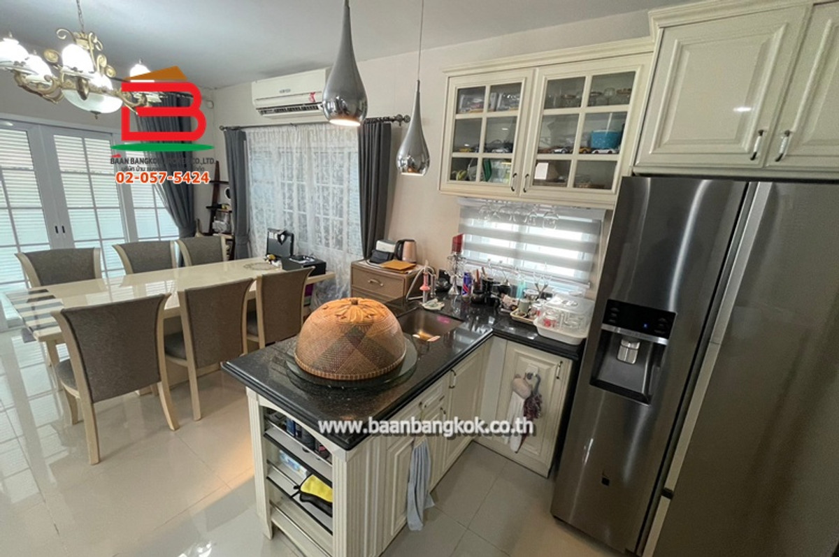 Property code 11690: 2-story detached house, ready to move in ** Coordinates: 13.84914070,100.71101307 Property type: 2-story detached house, ready to move in, has 3 bedrooms, 3 bathrooms, 1 kitchen, 1 maids room, has a balcony, can park 2 cars in the house, quiet project, good atmosphere, good location, shady, nice to live in. Traveling in and out is convenient Decoration: Granito tile floor size 60x60, smooth plaster ceiling, digital door locks by password in every room. The interior is equipped with mosquito screens + wrought iron. There is a water pump + water tank, 4 air conditioners, and on the side there is a garden. Relaxation pavilion and fish pond, cool and beautiful. Within the project there are complete utilities such as 24-hour security, CCTV, playground, swimming pool Area: 65.1 sq m. (usable area 171 sq m.) Selling price: 7,990,000 baht // Reduced selling price: 7,490,000 baht Project name: Burasiri Panyainthra **Near Safari World, near Khlong Sam Wa District Office ** Ask for more information. ** Khun Ae Contact number Office Contact number, Contact number Location: Main Road along Khlong Song, Bang Chan Subdistrict, Khlong Sam Wa District, Bangkok Highlights/Nearby Places: - Fashion Island - The Promenade - Makro along Khlong Song - Lotus along Khlong Song - Mini Big C Safari World - Hathaimit Market - Nai Yai Market - Khlong Sam Wa District Office - Safari World - Sathit Phatthana School - Soma Phatthana School - Wat Khubon - Wat Phraya Suren -Synphaet Hospital - Serirak Hospital - Wat Rat Satthatham (Wat Bang Chan) Convenient travel in and out in many ways: - Ram Inthra Road - Hathairat Road - Liap Khlong Song Road - Khubon Road - Phraya Suren Road - Bang Pa-in-Bangna Motorway Road - At Narong-Ramintra Expressway