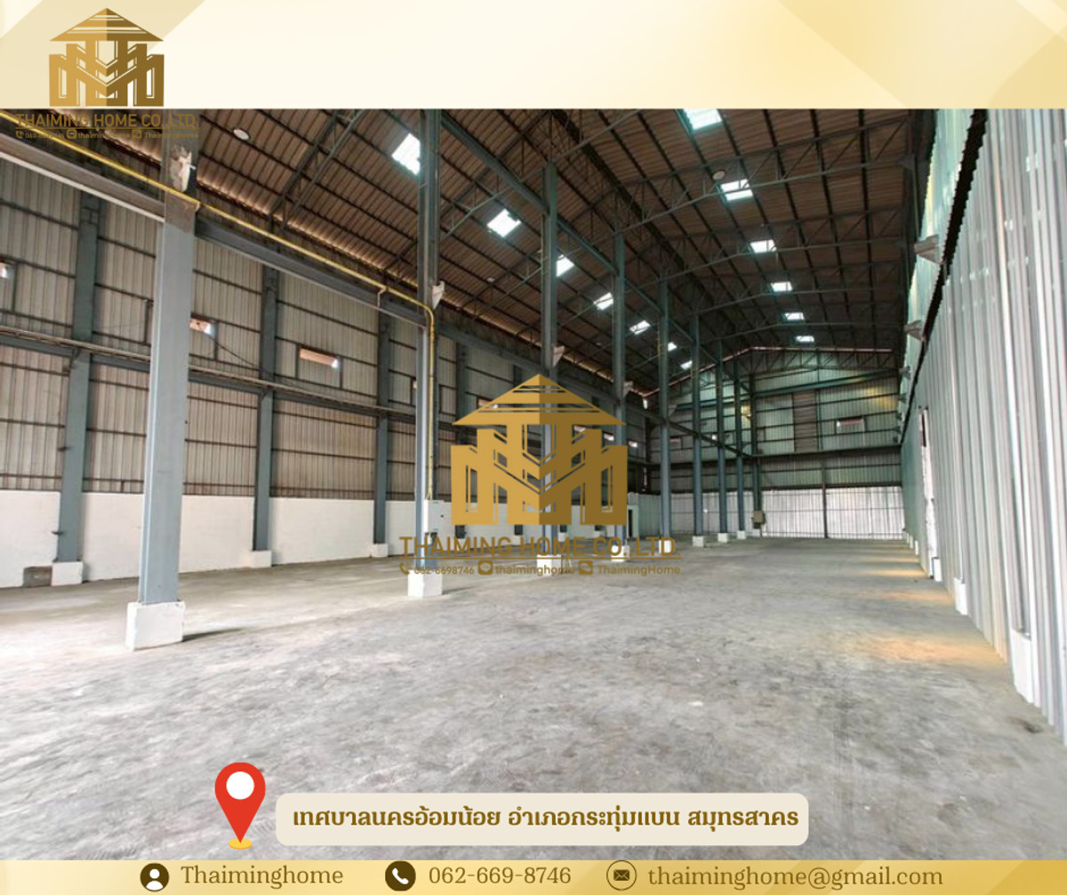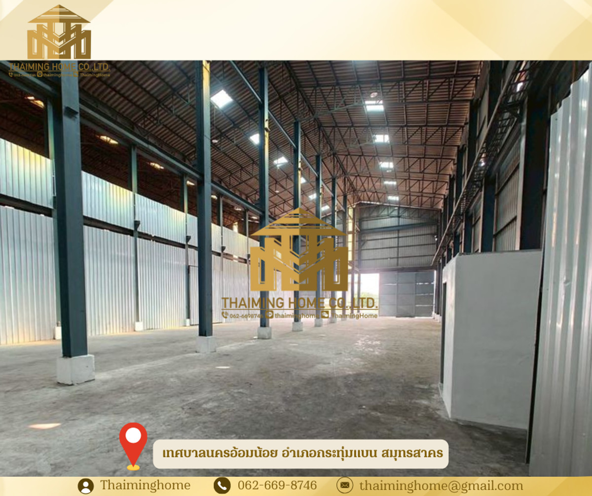 Warehouse for Rent, 575 sq.m., Om Noi, Samut Sakhon (Property Code TW4-1640226) Details - Area: 575 sq.m. (36 meters long, 16 meters wide, 12 meters high) - Located on Setthakit 1 Road - Easy access, next to main road - Warehouse door height: 5.5 meters - Container trucks can enter - Floor load capacity: 2 tons - Spacious and secure surrounding area with CCTV cameras - Built-in restroom Nearby Places - Mahachai 2 Hospital - Khlong Kae Fresh Market - ​​Makro Om Noi - Big C Om Yai - Om Yai Park, Pan Lan Fresh Market Rental Conditions - 1-year lease agreement - 1-month security deposit - 1-month advance payment - Monthly rent: 42,000 THB ---------------------------------------- บริษัท ไทยหมิง โฮม จำกัด Thaiming Home Co.,Ltd. 泰明房园 房产公司 ----------------------- Contact ติดต่อ : Contact number Contact : Contact number คุณหมิง(中文) Line ID: thaiminghome Line ID: @thaiminghome https://lin.ee/PkkHwYv Wechat : ThaimingHome E-mail : Contact email -----------------------