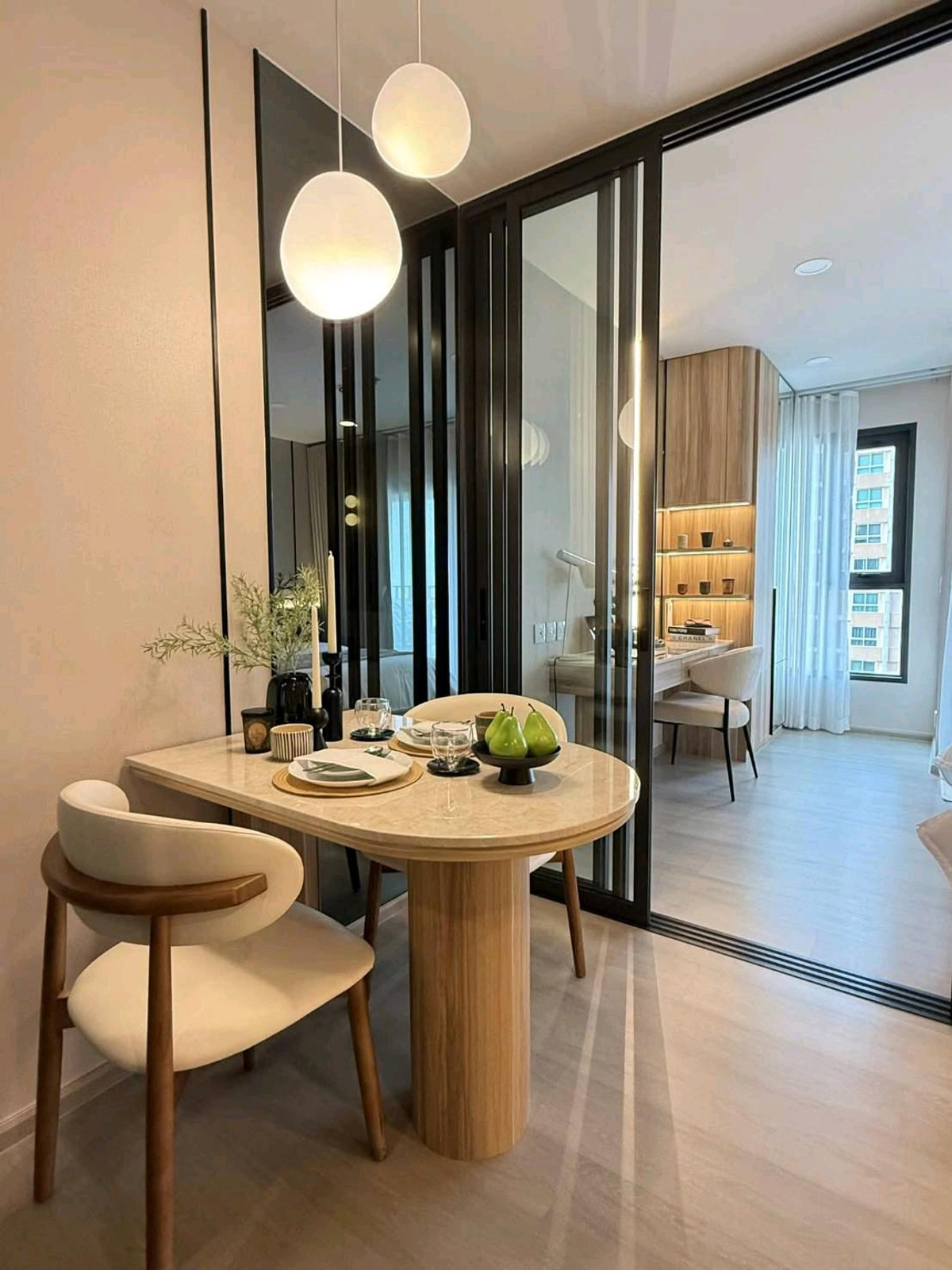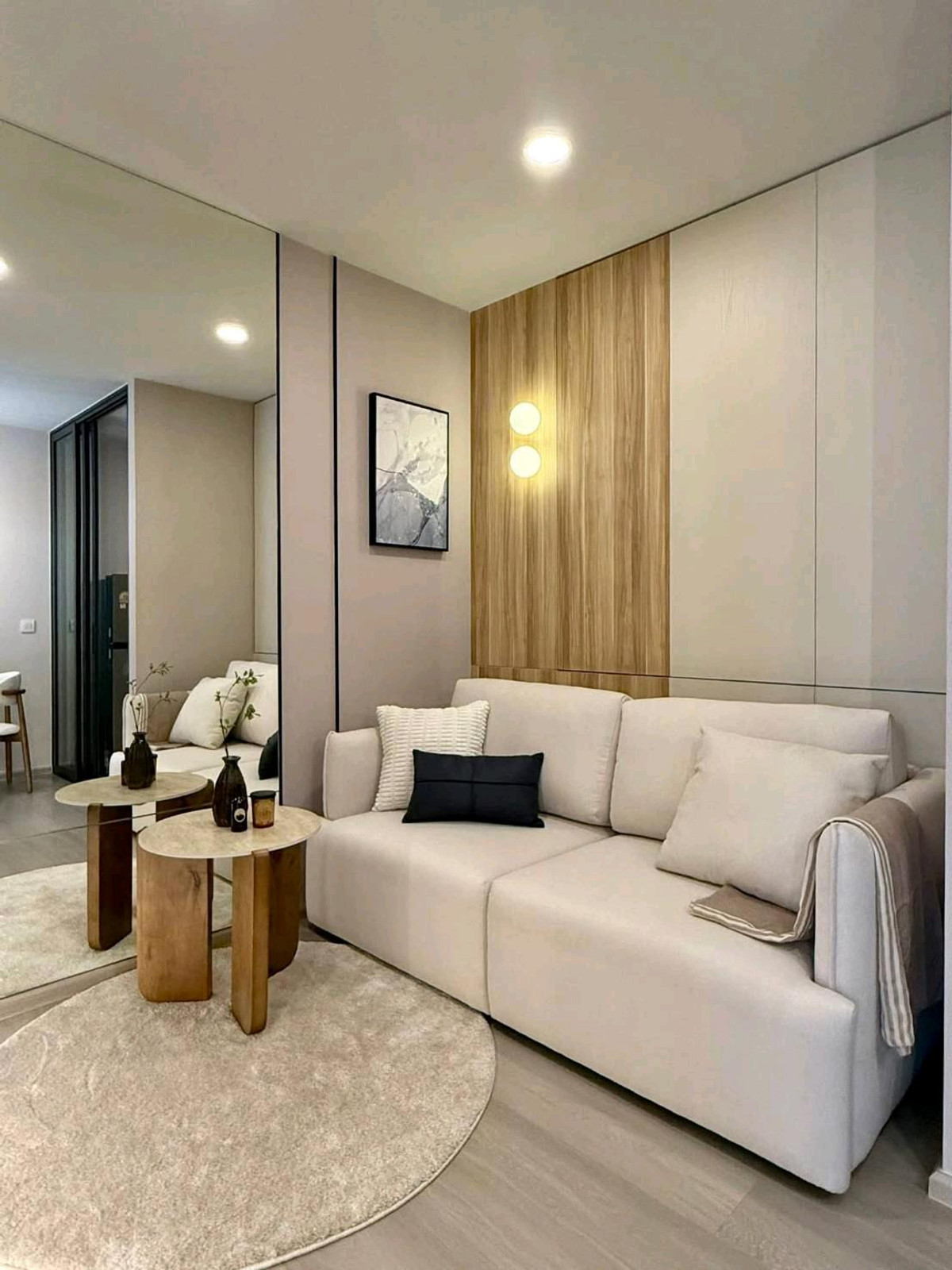 Aspire On Nut Station 24th floor, size 31 sq m., North side 1 bedroom, 1 bathroom 1 living room with built-in kitchen Fully furnished and electrical appliances 5 foot bed, has a washing machine Near B