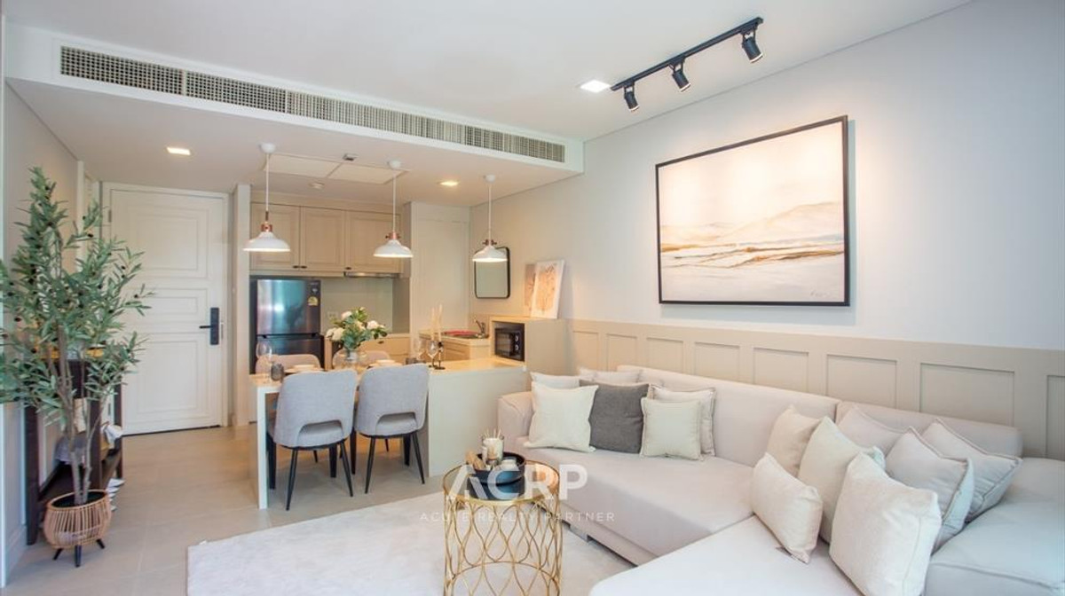 Beachfront condo for sale, Hua Hin, Marrakesh Residence. Utility area 49 sq m., 1 bedroom, 1 bathroom. Fully furnished. The project has 5-star hotel standard amenities such as a fitness center, a swimming pool over 240 meters long, key card system. Parking under the building and 24-hour security, are the best location! Near Port Department Store, Cicada Market, Vana Nava Water Park, golf course, etc., ready to move in. For sale only 5.5 MB. Call Contact number