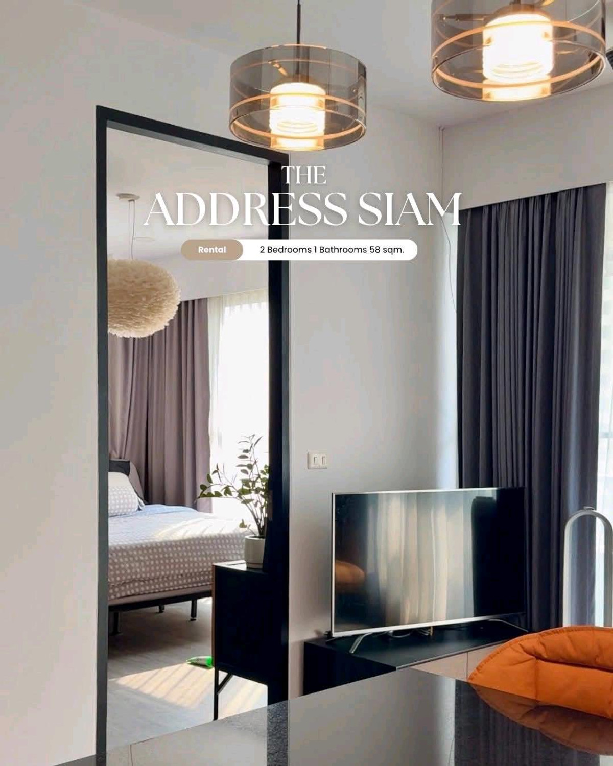 The Address Siam 17th floor, size 58 sq m 2 bedrooms, 1 bathroom 1 living room with built-in kitchen complete furniture and electrical appliances 1 Parking Rent 30,000 baht/month 📌📌Interested in makin