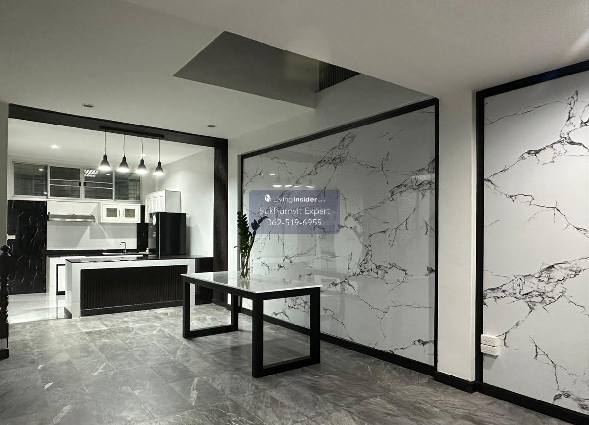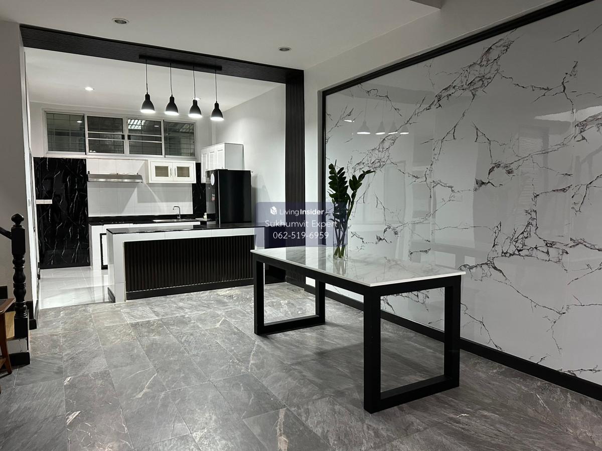 (BTS Thonglor, Pet Friendly) Newly Renovated Townhome for Rent – 800 meters to BTS Thong Lo Property Details * Usable area over 200 sq.m. * 3 bedrooms, 4 bathrooms * Maid’s room * Parking space * Pet