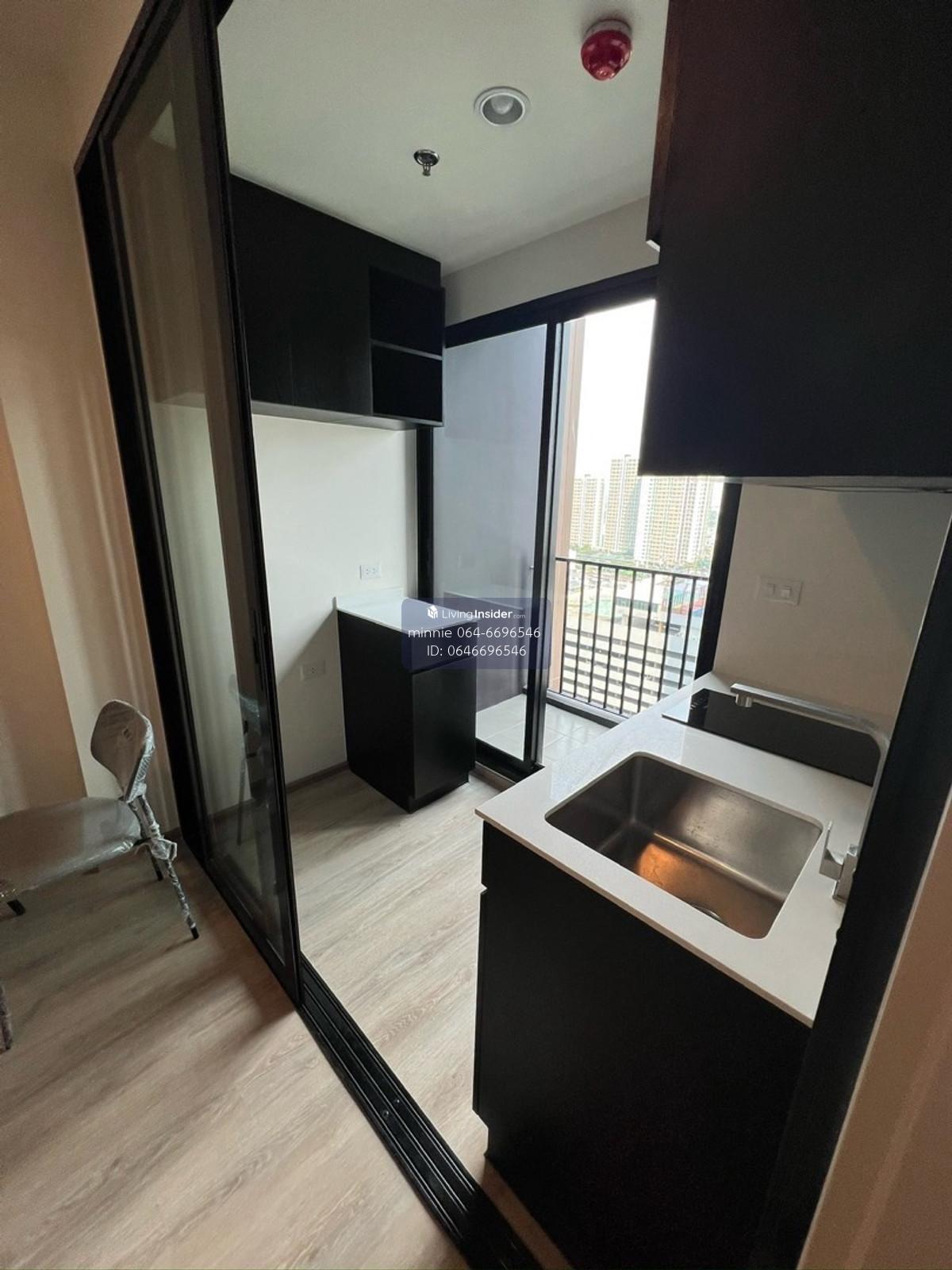 New room, just finished decorating 🔥Nue district R9🔥 Building N, size 30 sq m, for rent 23,000฿, view of Central Rama 9. If interested, make an appointment to view at 064-6696546 Minnie, this number can be reached via Line.