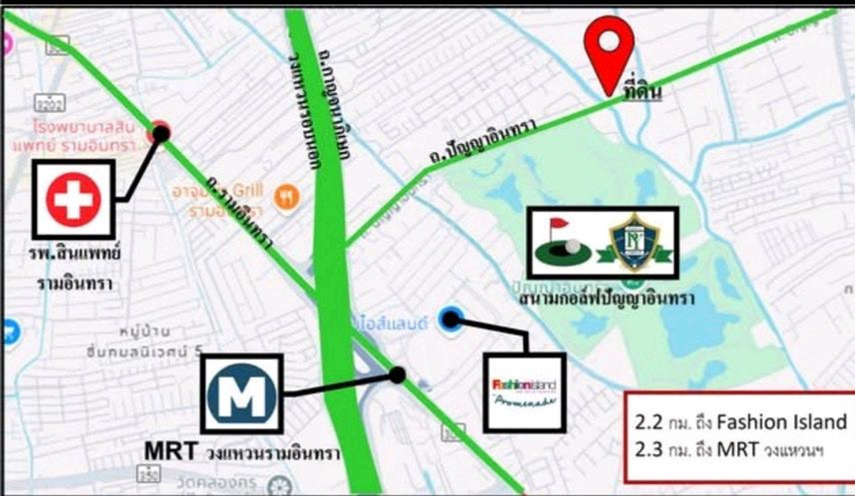 For Sale! Beautiful Vacant Land in Panya Indra Village P9 Opposite Panya Ramintra Golf Course Land Details: • Size: 1 rai 1 ngan 13 square wah (total 511 sq. wah) • Yellow City Plan Zone Y.3 (suitable