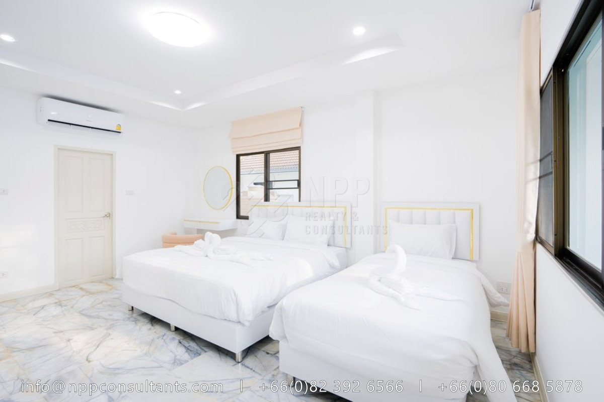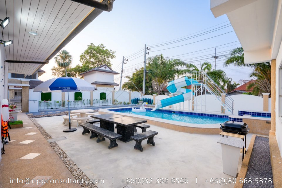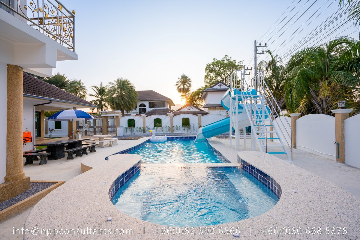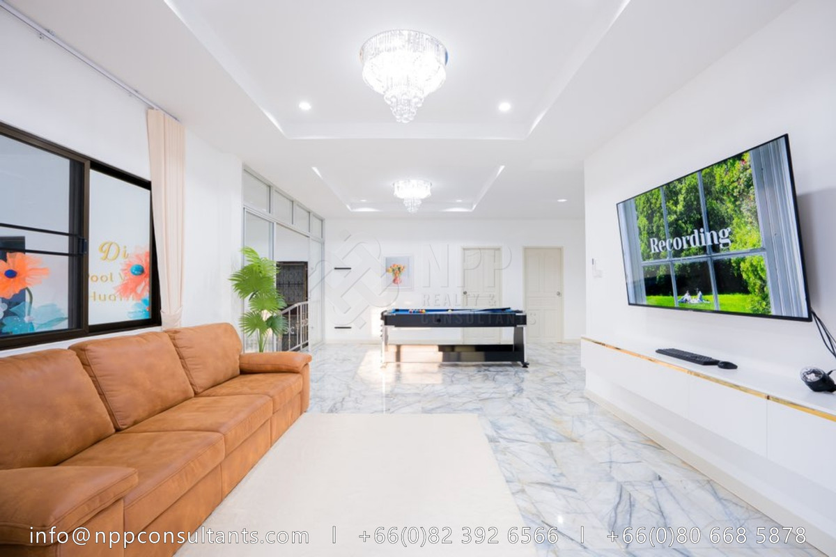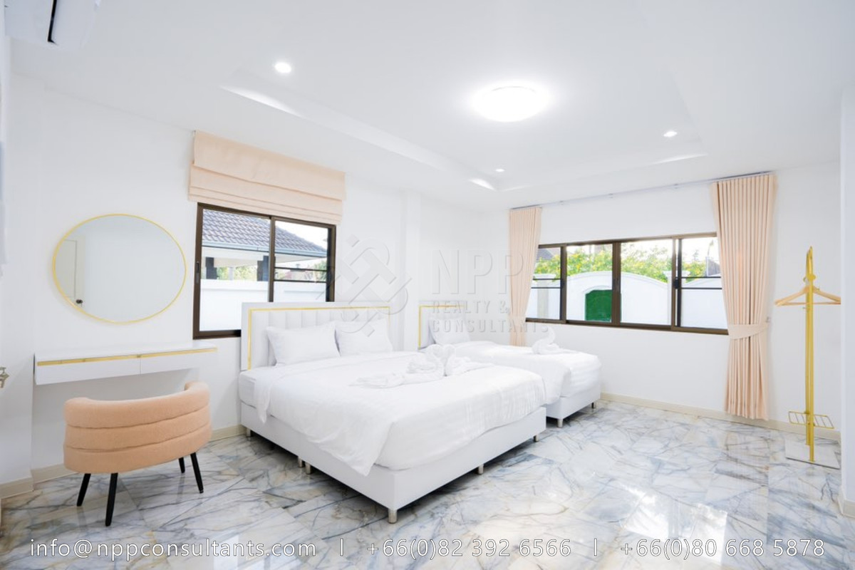 🏠 Property Details – Land area: 600 sq.m. – 4 Bedrooms – 3 Bathrooms + 1 Hot Tub – Spacious living room – Fully equipped kitchen – Outdoor BBQ area – Private saltwater swimming pool 🏊♂️ – Pool table 🎱 – CCTV security system – Fully furnished & move-in ready 🛋️ 💰 Selling Price : 8,500,000 THB 💰 For Rent : – 50,000 THB/month (7–12 months contract) – 60,000 THB/month (1–6 months contract) – Daily rental: from 5,900 THB/night 📍 Location: Sunset Village, Hua Hin (Bofai Soi 6) 🚗 Only 2 km from Hua Hin Beach – Quiet and private residential area 🌿 – Short drive to Hua Hin Beach 🏖️ – Close to Hua Hin town, restaurants, cafés, and markets 🍽️☕ – Easy access to main roads and daily conveniences 🚗 📩 Contact us for more details or to arrange a private viewing. This beautiful pool villa is perfect for both investment and holiday living in Hua Hin 🌴✨ Contact for more information : Call/Whatsapp/Line/WeChat : Contact number Email : Contact email Facebook : @npprealtyandconsultants Youtube : NPP Realty & Consultants Website : www.nppconsultants.com