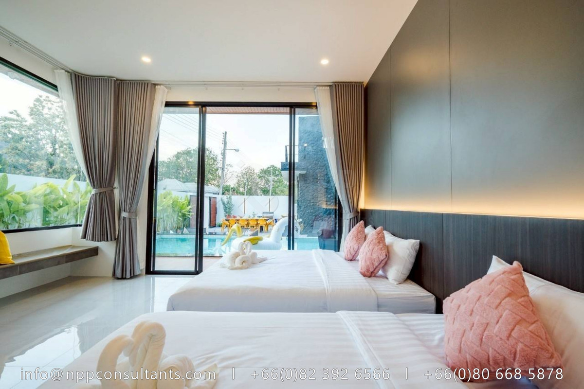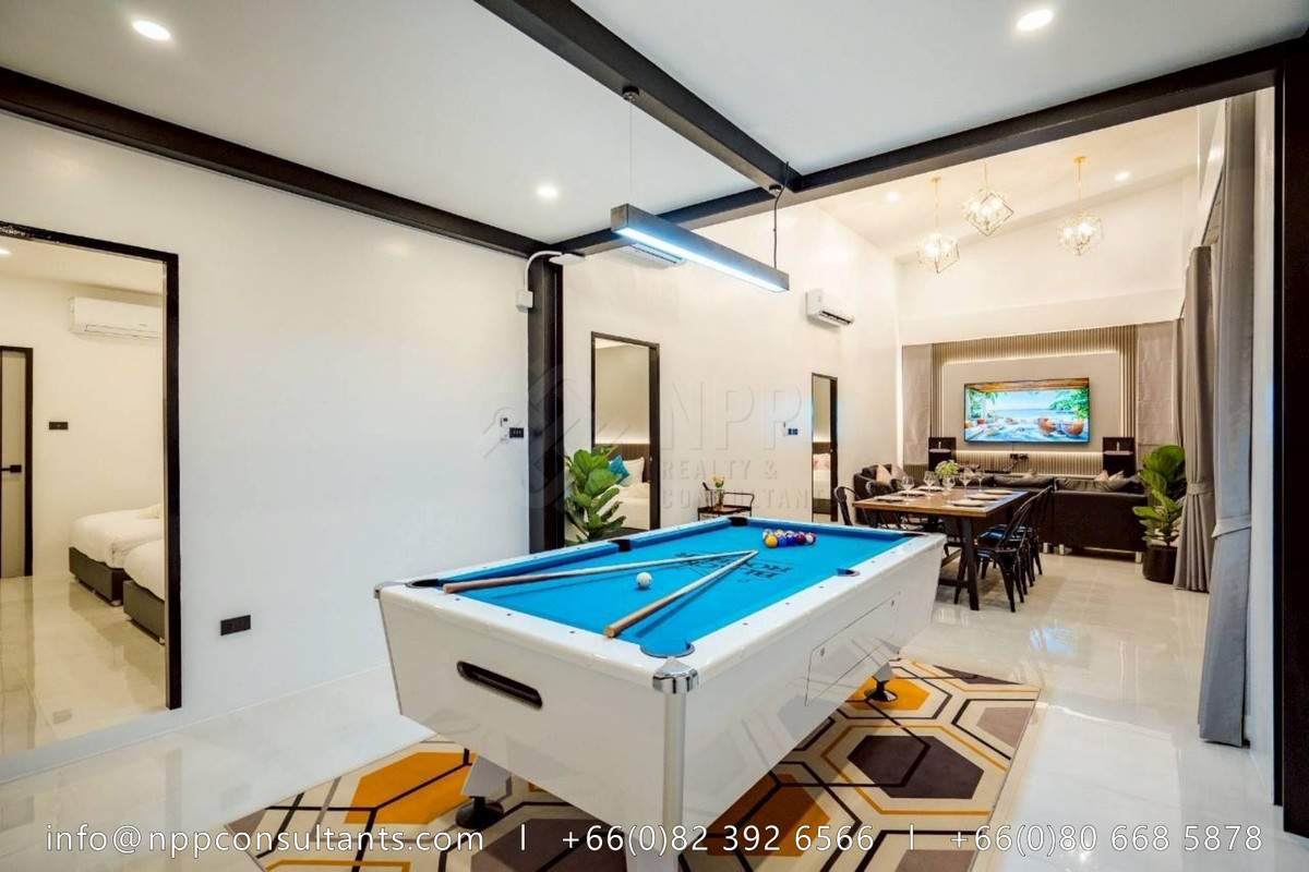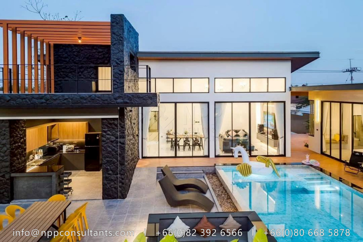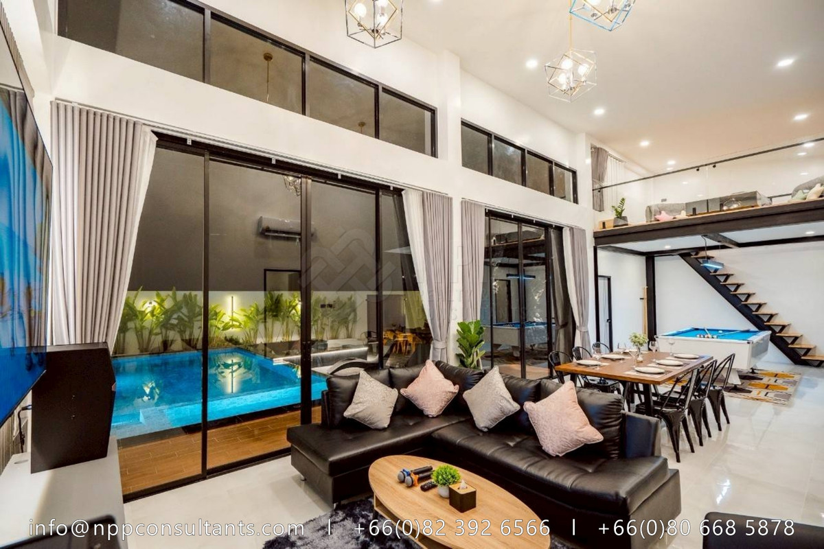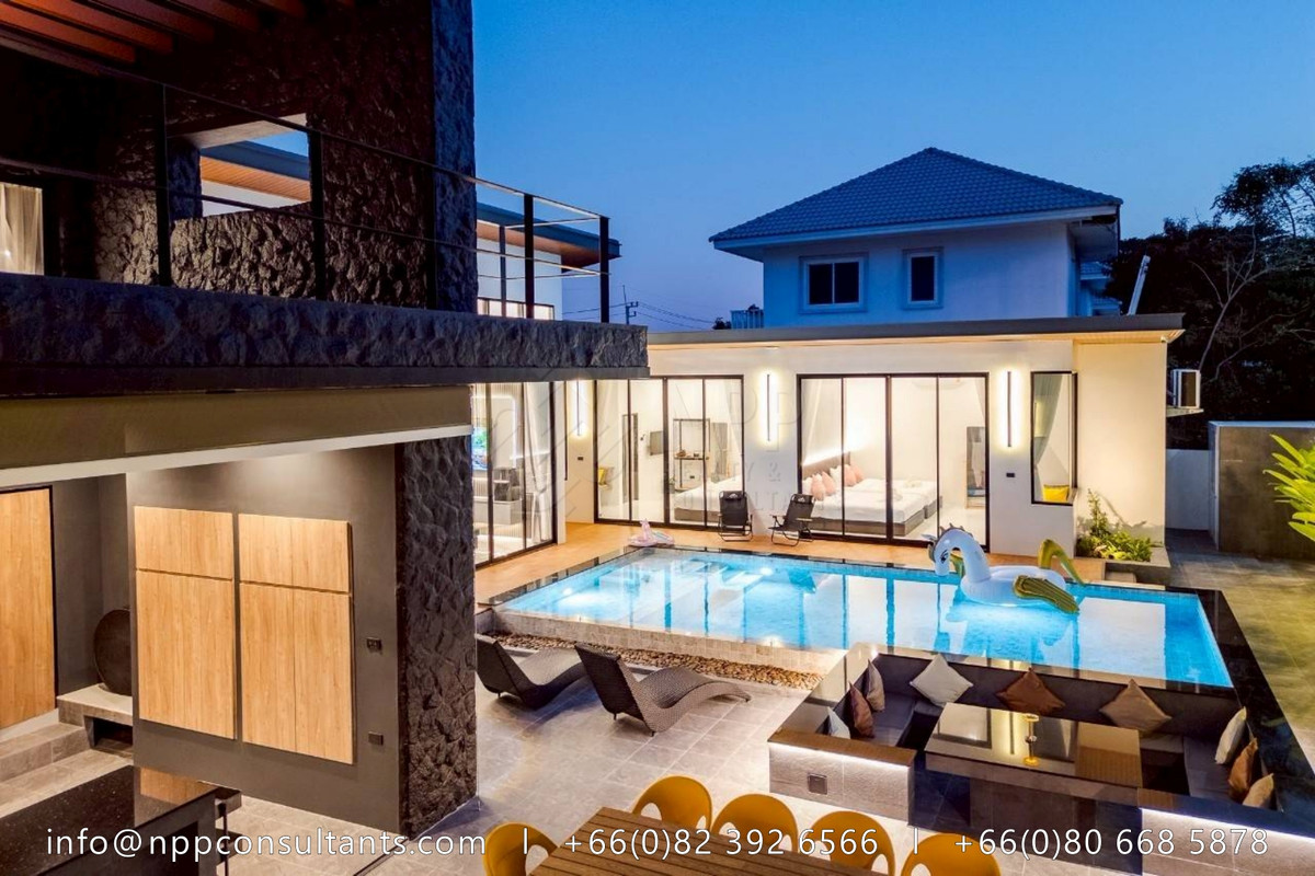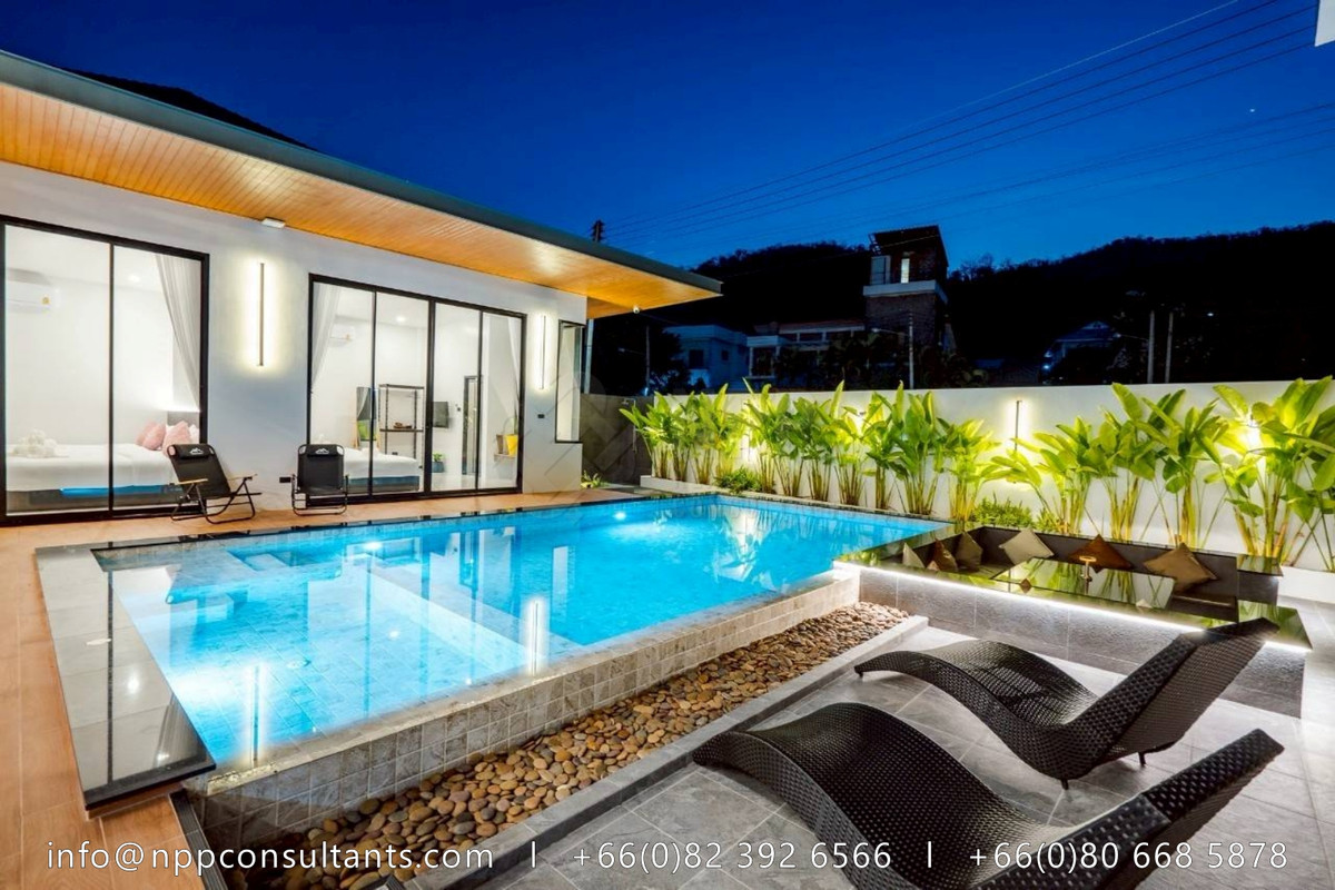 "Luxury Pool Villa in the Heart of Hua Hin Perfect for investment or private living. Proven monthly income of 200,000+ THB from short-term rentals, with full social media presence included. 💥 Bonus: Free adjacent land plot of 147 sq.wah! Rare value-added opportunity. 🏡 Property Highlights: Land area: 159 sq.wah Usable space: 400 sq.m. 5 Bedrooms | 6 Bathrooms | Maid & storage room Spacious 64 sq.m. living room with 5m-high ceiling and mezzanine 8.5×4.5m overflow swimming pool with stylish sunken seating Built-in European kitchen with real stone countertops Vertical garden & landscaped greenery Parking for 4 cars | Regional waterworks system Fully furnished – move in or start renting out right away 📍Prime central Hua Hin location – ideal for investors or holiday home seekers 💰 Asking Price: 13.9 Million THB" 📩 For more information, please contact: 🌏: https://nppconsultants.com 📞: Contact number 📧: Contact email 👍🏻𝗙𝗢𝗟𝗟𝗢𝗪 𝗨𝗦: @𝗡𝗣𝗣𝗖𝗢𝗡𝗦𝗨𝗟𝗧𝗔𝗡𝗧𝗦