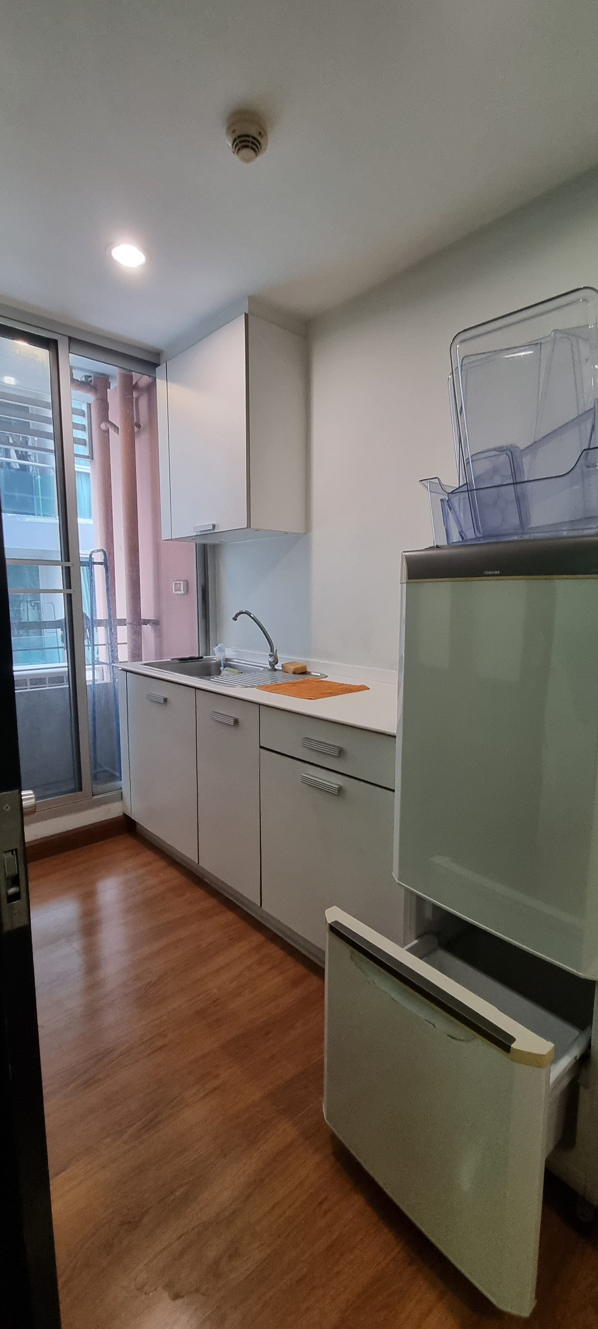 Condo for sale cheap, The Kris Express 2, 4th floor, area 31.42 sq m., at the entrance of Soi Ratchadaphisek 19, next to the MRT Ratchadaphisek, price 2.25 million baht.