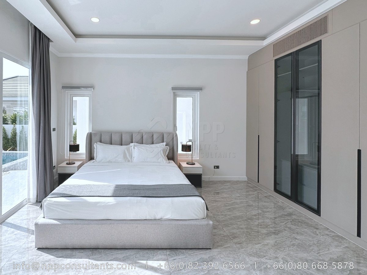 🏡 Private Pool Villa | Pet Friendly 🛏 4 Bedrooms | 🛁 4 Bathrooms 📐 Living Area: 200 Sq.M. 🌳 Land Area: 125 Sq.Wah 🚗 2 Parking Spaces 🏊♂️ Private Pool with Jacuzzi (9 x 4 m.) A spacious and well-designed private pool villa, perfect for families and long-term living. Located in a peaceful residential area of Hua Hin Soi 88, offering comfort, privacy, and great value. Highlights: – Private swimming pool with jacuzzi for relaxation 🏊♂️ – Spacious living and dining areas with functional layout 🛋️ – Pet friendly – pets are welcome 🐶🐱 – Quiet and secure neighborhood, ideal for long-term stay 🌿 – Great size land and house, suitable for family living 🏡 📍 Location: Hua Hin Soi 88 – Easy access to Hua Hin town and main roads 🚗 – Close to markets, shops, restaurants, and daily conveniences 🛍️🍴 – Short drive to beaches and popular attractions 🌊 💵 Rent: 75,000 THB / month 📩 Contact us now for more details or to arrange a private viewing. Comfortable living with private pool & pet-friendly lifestyle in Hua Hin. 🏡✨ Contact for more information : Call/Whatsapp/Line/WeChat : Contact number Email : Contact email Facebook : @npprealtyandconsultants Youtube : NPP Realty & Consultants Website : www.nppconsultants.com
