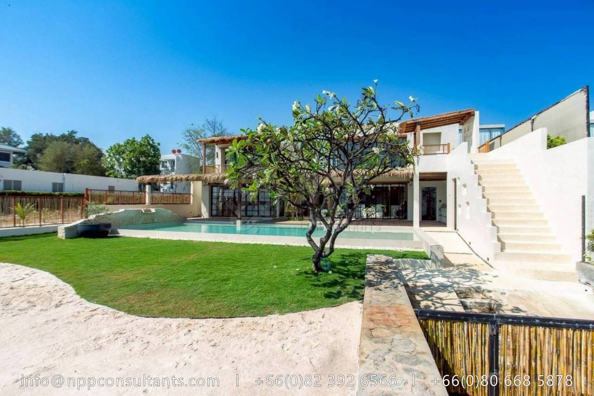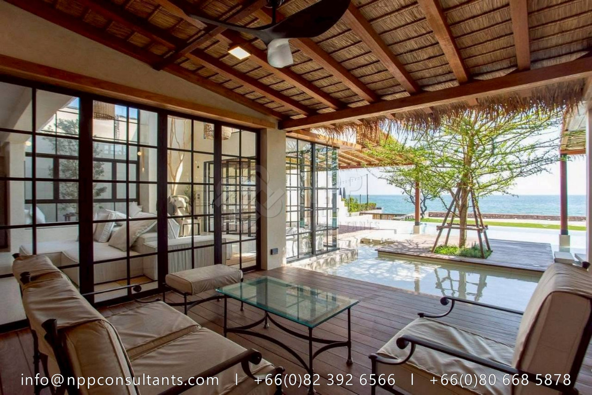 🛏 5 Bedrooms | 🛁 6 Bathrooms 📐 Usable Area: 550 Sq.M. 🌳 Land Area: 200 Sq.Wah 🏊‍♂️ Private Swimming Pool Property Highlights: – Absolute beachfront with direct access to the sea 🌊 – Resort-inspired architecture with seamless indoor–outdoor living – Open-plan layout designed to capture panoramic sea views from every corner – Private swimming pool overlooking the ocean 🏊‍♂️ – Spacious living and dining areas, ideal for entertaining – Large bedrooms with ensuite bathrooms and serene coastal ambiance – Premium materials and refined finishes throughout 📍 Prime Beachfront Location – Hua Hin – Prestigious and highly exclusive seaside setting – Close to Hua Hin town, fine dining, and luxury lifestyle amenities – Rare opportunity to own a true beachfront residence in Hua Hin 💰 Selling Price: 120,000,000 THB 📩 Contact us for a private viewing or more details. Contact for more information : Call/Whatsapp/Line/WeChat : Contact number Email : Contact email Facebook : @npprealtyandconsultants Youtube : NPP Realty & Consultants Website : www.nppconsultants.com