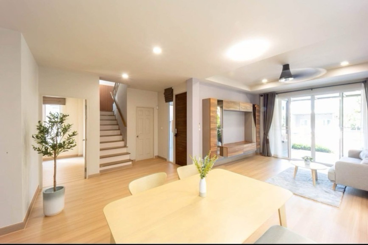 Single house for rent, Baranee Residence village, Khlong Sam, Khlong Luang, Pathum Thani, large house, 4 bedrooms, has a bedroom on the ground floor. Near famous universities and schools Suitable for family living 💰Rent 34,000 baht/month (including common fees) House details •4 bedrooms, 3 bathrooms •4 parking spaces •there is a bedroom on the ground floor •3 air conditioners Body •Water heater for the whole house •Bed+mattress+wardrobe •Dining table+sofa •Kitchen ready to use •Digital door Common facilities •Large garden •Playground •Swimming pool with salt water system •Fitness •Sauna 📍Nearby places •Thammasat University, Rangsit Center (about 15 Minutes) •Sarasas Witaed Khlong Luang School 📞 Contact Property Code:BK2244 Tel: Contact number LINE:@Kinglandcondo FB :Kingland Estate Team WhatsApp / WeChat : Contact number #kinglandestateteam #kinglandcondo #Single house for rent #Khlong Sam #Khlong Luang #Pathum Thani #House near Thammasat #Family rental house