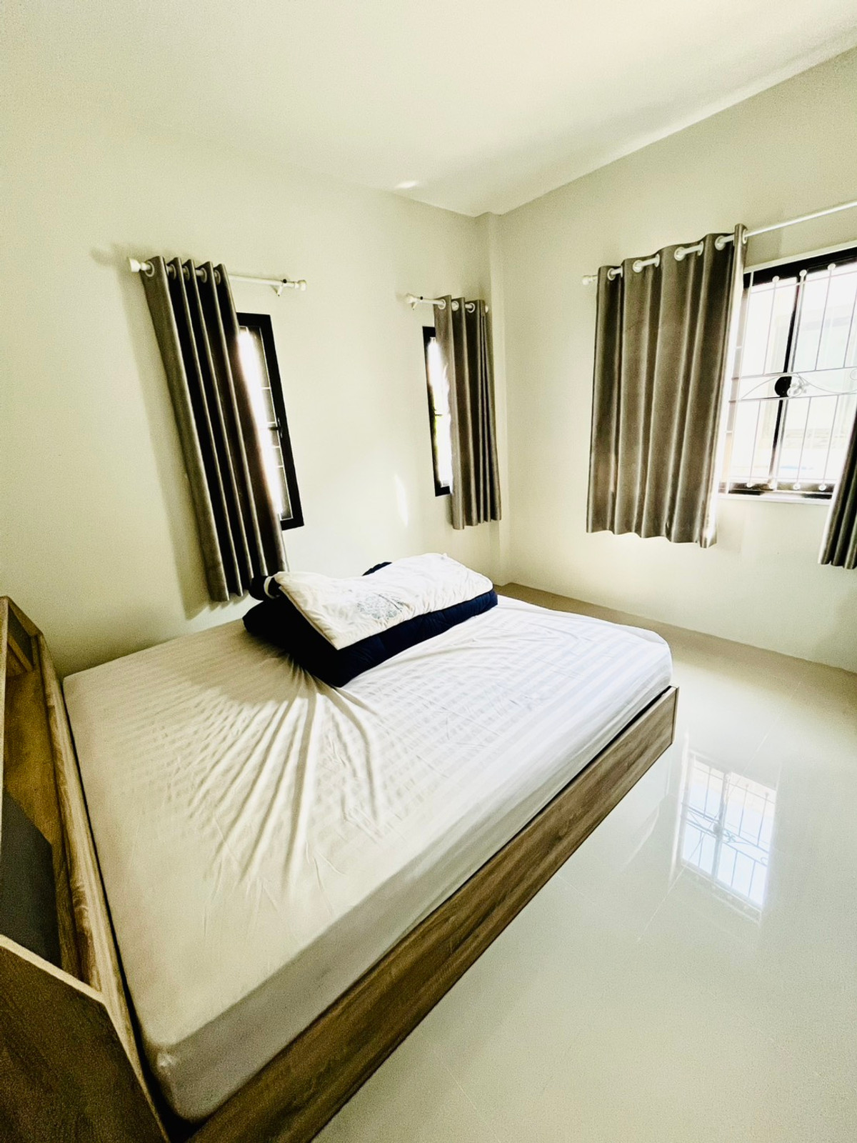 Single house on the corner, beautiful house, wide area, fully furnished!! Comfortable living, peaceful, very private! With parking for 2 cars and a lawn on the side 3 bedrooms / 2 bathrooms / 1 kitchen / wide living room / total 72 sq m. Equipped with good wrought iron. Complete with mosquito screens and curtains throughout. Every room! The air is very good. Very clear and airy. The central section is spectacular!! Monthly rent 17,000 baht / including common areas If interested, call/add Line Contact number Phon water and electricity, Luang security guard / CCTV / near 7-Eleven, Central Korat, The Mall Korat, The Terminal 21 and many amenities. The road can be traveled in many ways. Easy entry and exit and connected to many roads. Very good location!