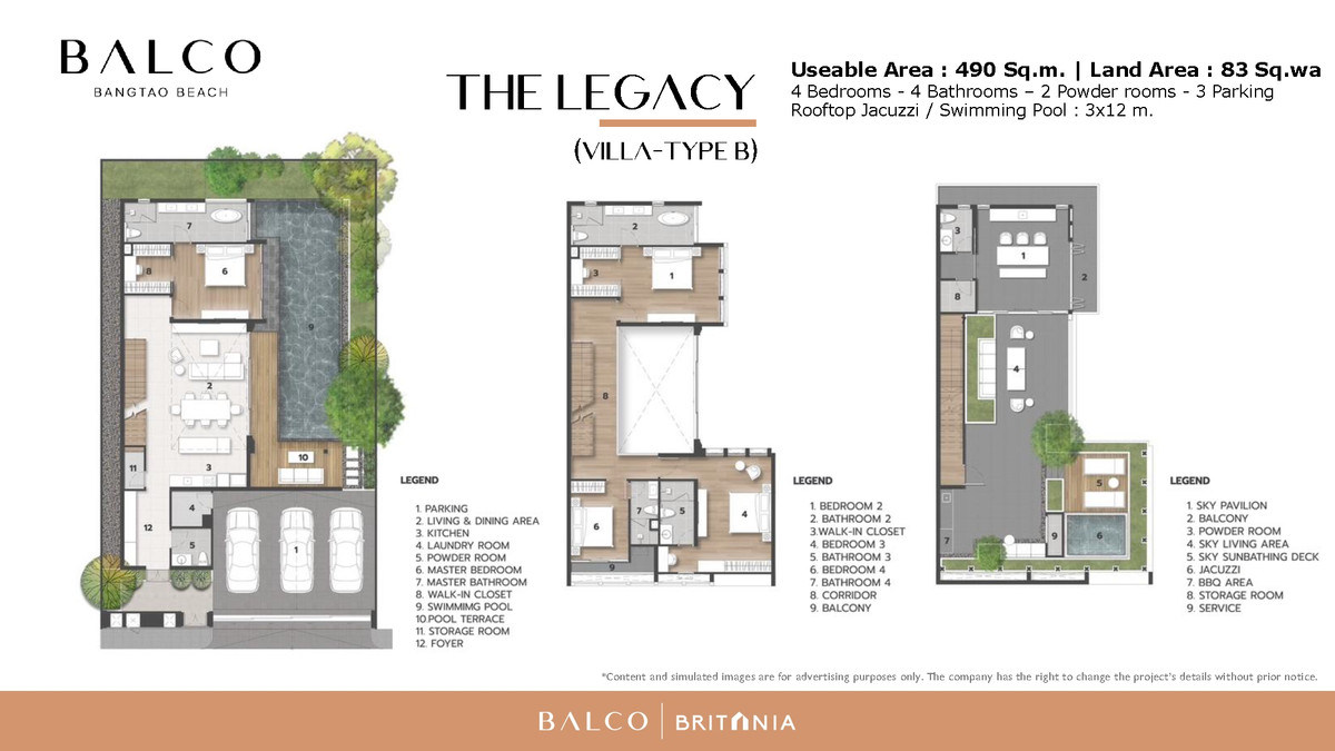 The Legacy Villa Type | Only 400 m to Bangtao Beach Location Located in the prestigious Laguna–Bangtao area, one of Phuket’s most desirable high-end residential neighborhoods. Surrounded by premium lifestyle destinations, including Catch Beach Club (400 m) and HeadStart International School. Project Description BALCO Bangtao presents The Legacy, a special luxury pool villa designed for privacy, comfort, and refined living. The villa is developed under the "Luxury Leisure" concept, offering generous relaxation spaces including a Sky Pavilion and Rooftop Jacuzzi for exclusive leisure and entertainment. Property Details Type: 3-storey luxury pool villa Land area: 83.74 sq.wah Usable area: 490 sq.m. Private swimming pool: 3 × 12 meters Bedrooms Spacious Master Bedroom with walk-in closet Ensuite bathroom with freestanding bathtub Living Area Elegant double-volume living room with high ceilings Bright, airy atmosphere similar to a large detached villa Outdoor & Leisure Private swimming pool (3 × 12 m) Rooftop Sky Pavilion for private gatherings and relaxation Kitchen Fully equipped chef’s kitchen with GAGGENAU appliances (Germany) Parking Private parking for up to 3 cars Exclusive Services & Facilities Personal Butler Service 24-hour shuttle service within the Bangtao area Prime Location Highlights Only 400 meters walk to Bangtao Beach Minutes to Porto de Phuket and Boat Avenue Located in one of Phuket’s strongest long-term investment zones Starting Price From THB 40.8 million For private viewing or further information Tel / WhatsApp: Contact number WeChat: suwapun_0701 LINE Official: @ssrealtyconnect