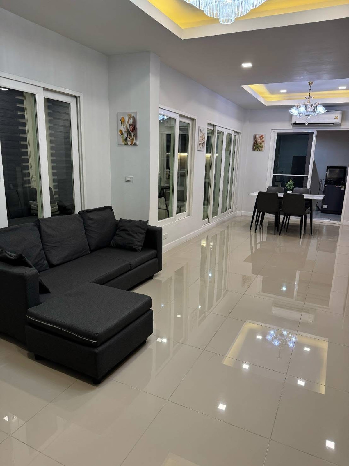 💥For rent 50,000 baht, detached house Casa Ville Watcharapol-Sukapiban 5 ❤️ If interested, contact: Na Tel No: Contact number , Contact number ❤️ Line ID : Contact number Beautiful house. Ready to move in immediately, good atmosphere and location, next to the main road, Sukhapiban 5, connecting to Phahonyothin, Ramintra, Watcharapol, Sai Mai, near the Sukhaphiban 5 Expressway. Close to the Green Line - 4 bedrooms -1 office -3 bathrooms - 2 parking spaces - 6 air conditioners -2 water heaters -water pump and water tank, good condition - bedroom furniture set, dining table set, guest set - newly renovated kitchen, decorated ready to use - electrical appliances, refrigerator TV, microwave, washing machine - Central Ramindra, Central Eastville, Fashion Island - Saimai Hospital, Synphaet Hospital