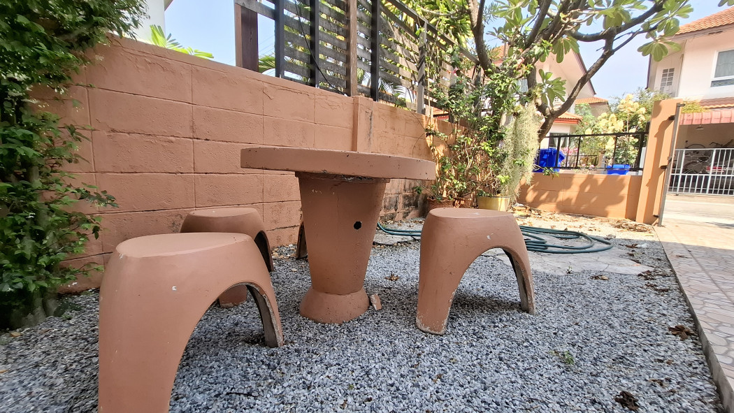 Phase 4MA, good security guard service House is 18 years old but in 90% perfect condition. 8-meter wide road in front of the house. South-facing house. Located in Bang Sao Thong District, Samut Prakan