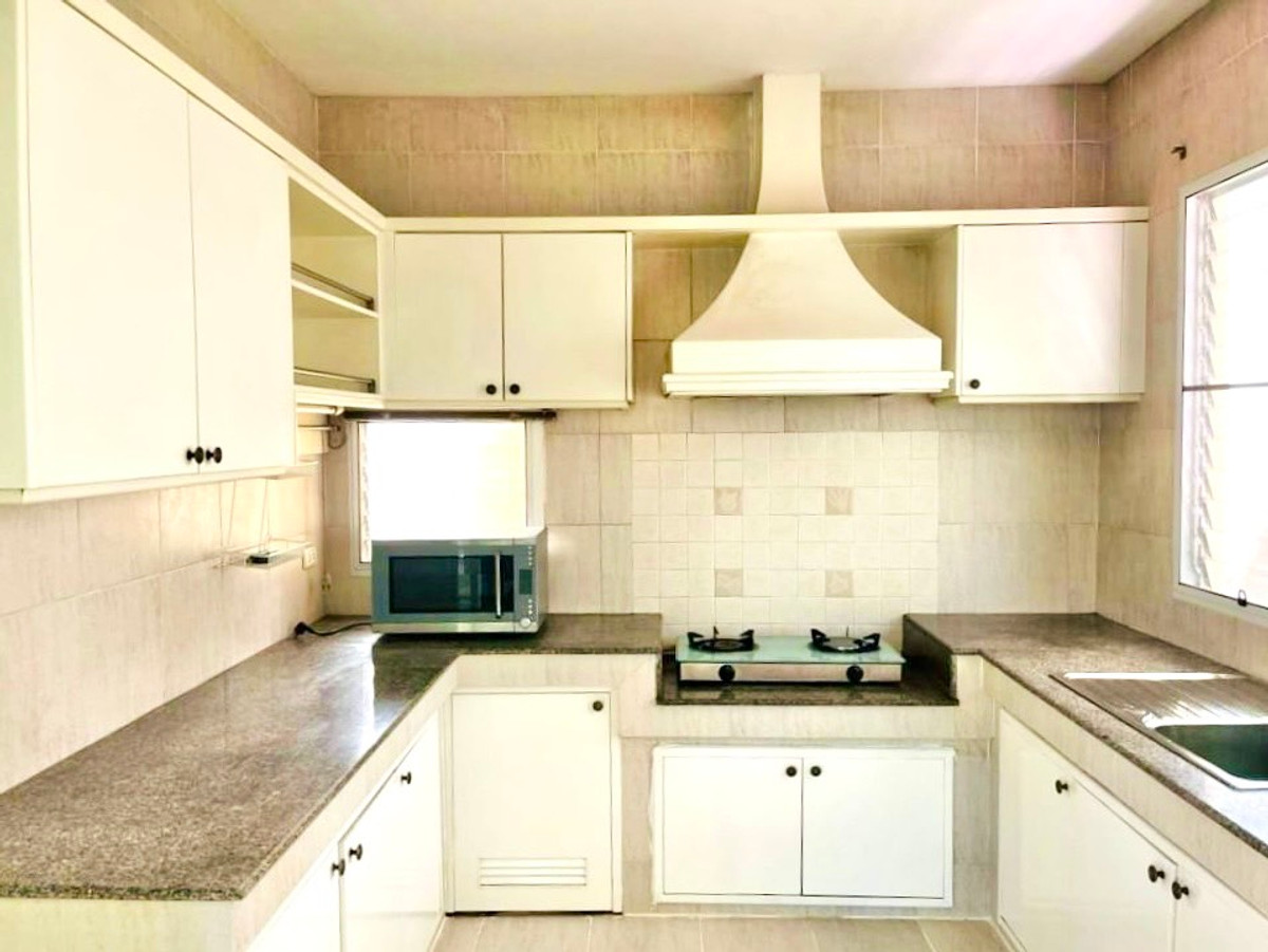 🌿 House details • Area 85 sq m. • Usable area 250 sq m. • 3 bedrooms | 4 bathrooms • Spacious living room, large hall. • Separate kitchen. • Maid's room + outside laundry room • Storage room under stairs + outside storage room • 6 air conditioners • New refrigerator + new washing machine • Remote gate opens and closes automatically. • House faces north, cool all year. • The garden around the house is beautifully decorated, very shady, with someone taking care of the garden every month 🌳 🚗 Convenient travel, can enter and exit in 2 ways. • In front of On Nut Road, opposite Sirindhorn Hospital. • Near shopping areas: The Paseo, Robinson Lifestyle, HomePro, Makro, The Little Walk • The back exit parallels the motorway. • Near Airport Rail Link Thap Chang Station, only 3 minutes. • Behind the village there is a 7-Eleven+ motorcycle taxi stand. Drop off at the BTS station • Only 15 minutes to Suvarnabhumi Airport. 💰 **For rent only 45,000 baht Make an appointment to see the house Call Contact number LINE natty4289