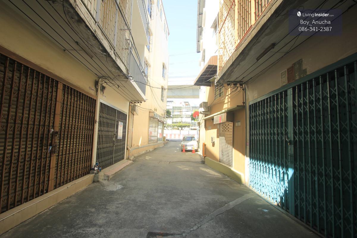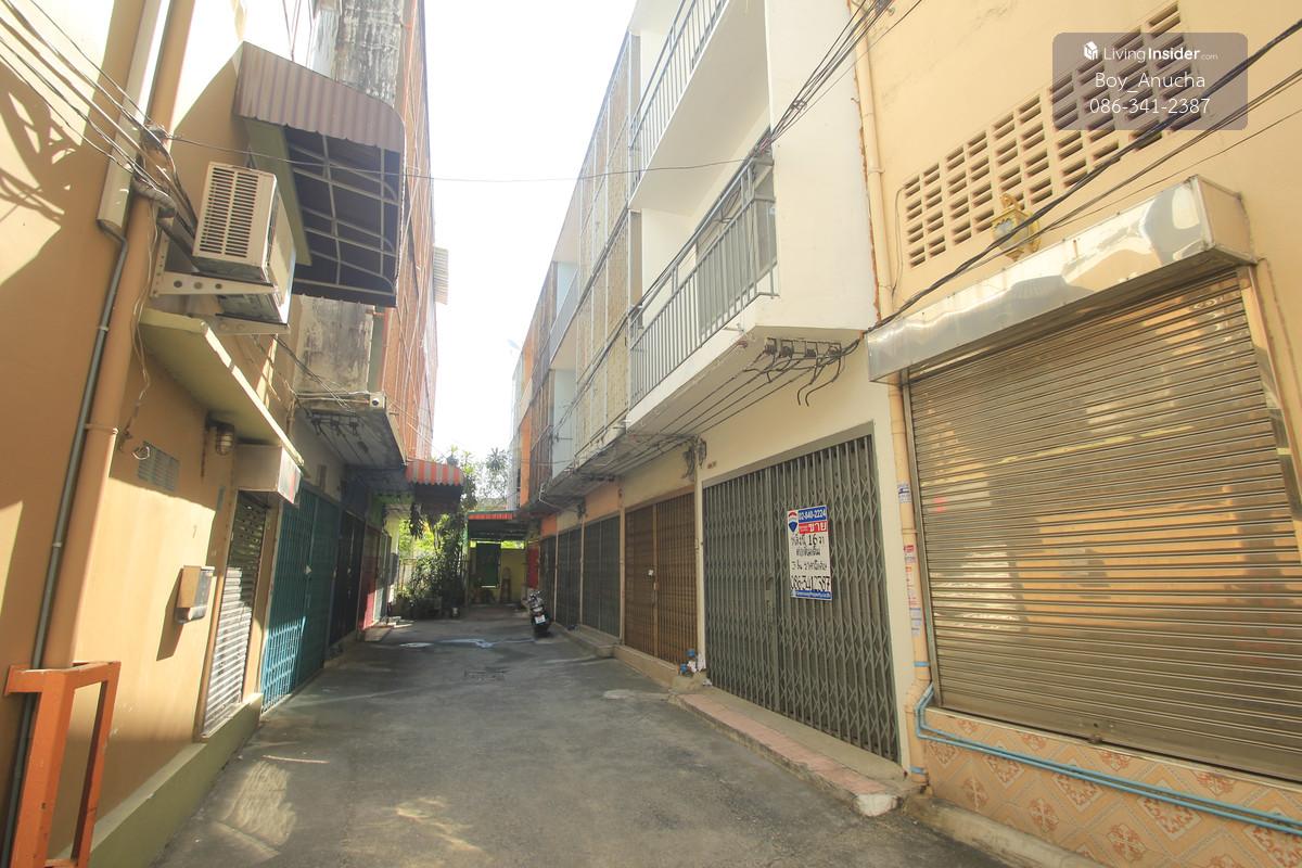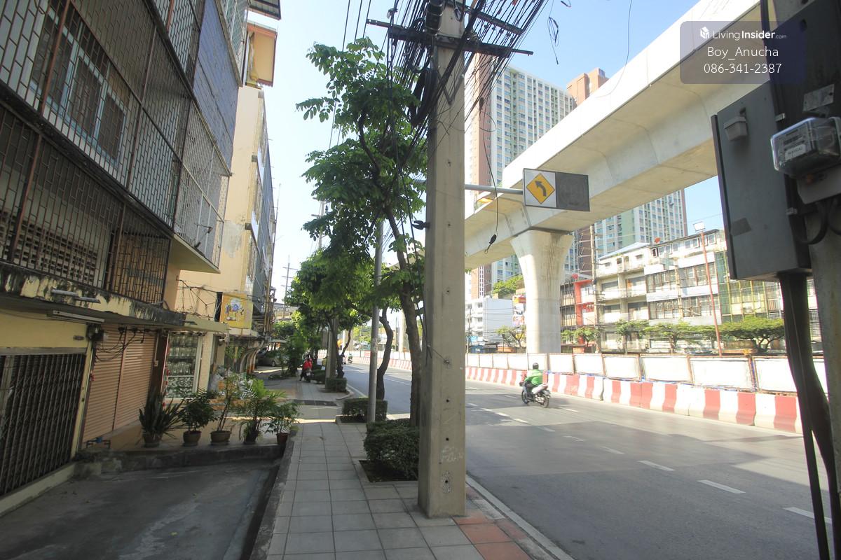 Shophouse, 3 floors, 16 square wah, 160 square meters, picture of land, bag of money, bag of gold, front width 4 meters, back of house width 6 meters, close to Suksawat Road, only 20 meters, can walk