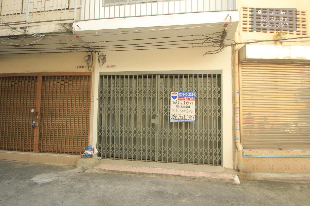Shophouse, 3 floors, 16 square wah, 160 square meters, picture of land, bag of money, bag of gold, front width 4 meters, back of house width 6 meters, close to Suksawat Road, only 20 meters, can walk in, not lonely. suitable for living or can be used for storage Strong structure High, clear ceiling, cheap price. If interested, contact Boy Anucha Remax Greenway Contact number