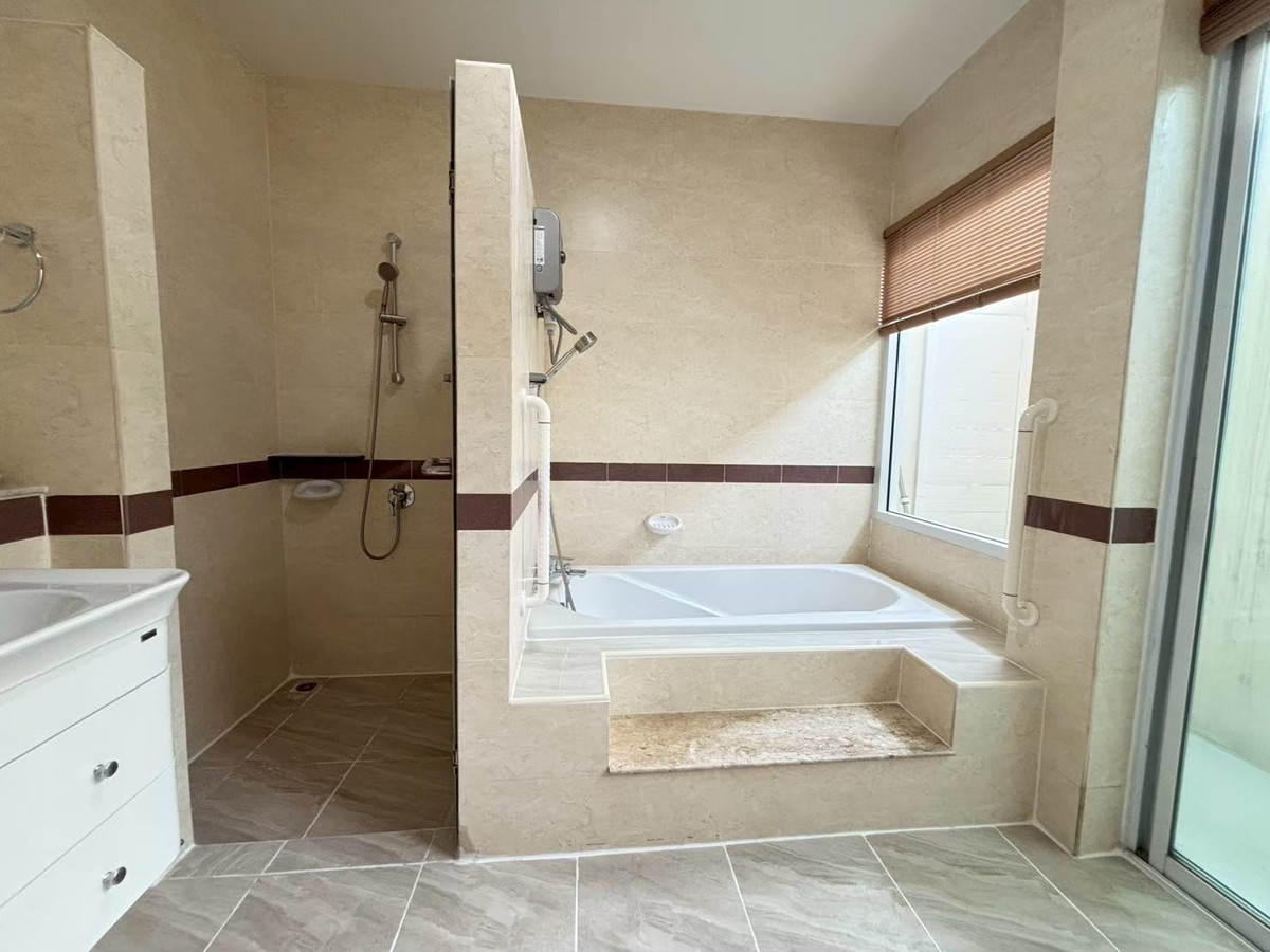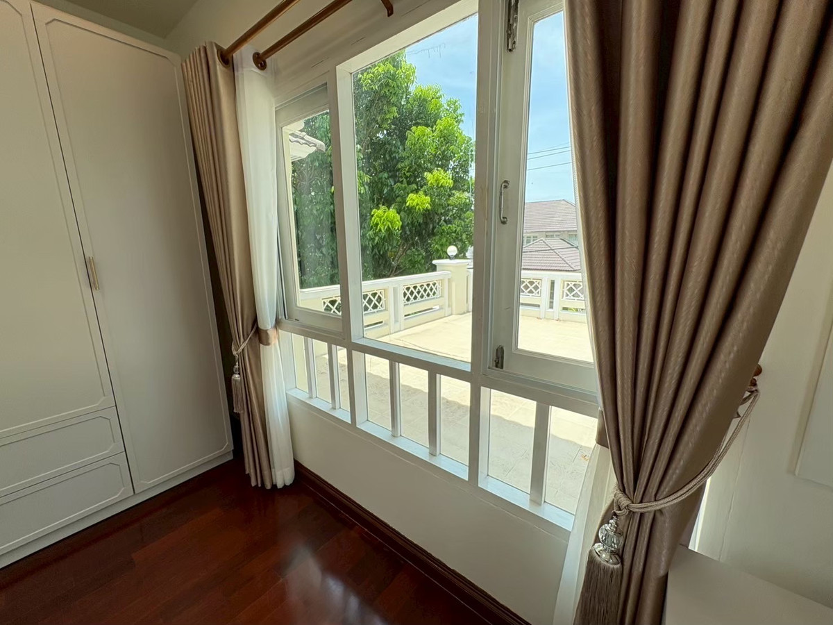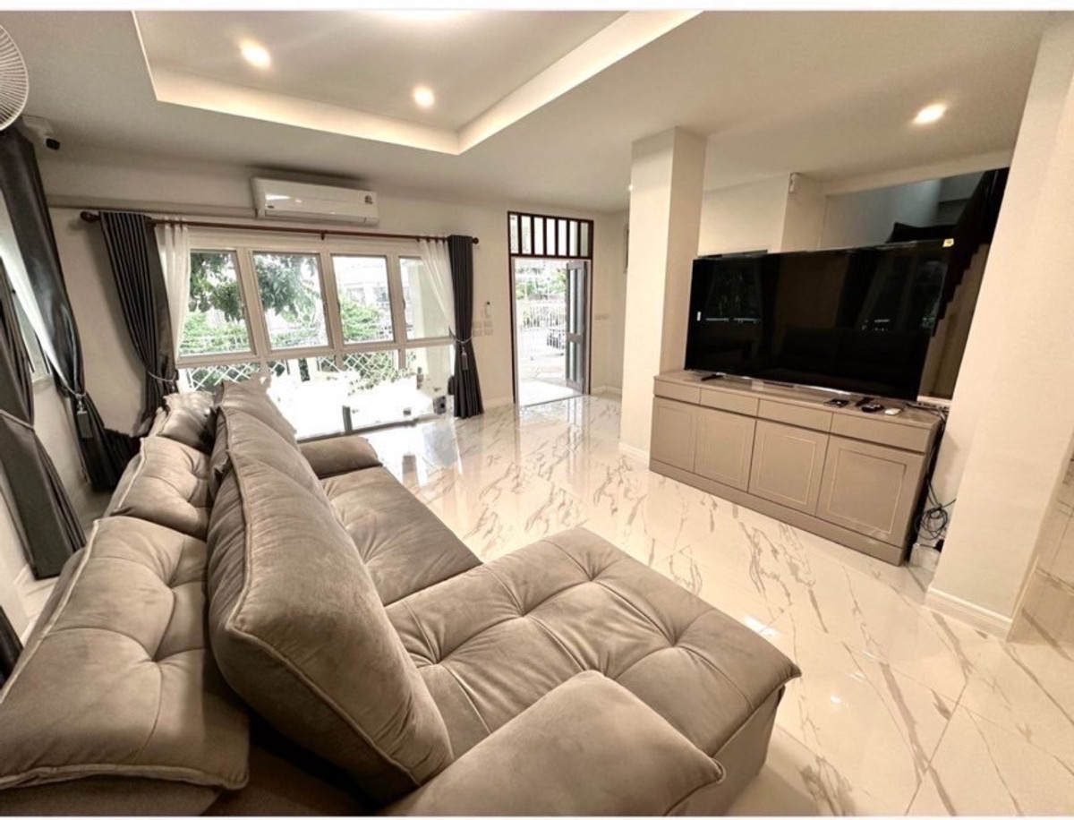 #For Rent Corner 2-Storey House + 2-Storey Guest House @ Perfect Place Ram 164 (111 sq.wah 410sqm. usable space) | Fully Renovated Luxury Smart Home space | Ready to Move In | Only 200m to 7-11 | 3 Access Roads |Near MRT Orange Line & International Sch 2-storey corner house for rent with 2-storey guest house inside – luxurious, smart throughout 🏡 Luxury Smart Corner House for Rent – 2-Storey Main House + 2-Storey Guest House 📍 Perfect Place Ramkhamhaeng 164 Project 2 | Area 111 sq m | Total usable area 410 sq m 📍 Perfect Place Ramkhamhaeng 164, Phase 2 | Land size: 111 sq.wah | 410 sqm usable space Only 200 meters to 7-11, Clubhouse, hair salon | 3 village entrances 📌 Only 200m from 7-Eleven, clubhouse, hair salon | 3 village entrances 💥 There has never been a renter – the entire house has been renovated. Ready to move in immediately! Near Ruamrudee International School, Lotus, markets, restaurants 💥 Never rented before – Fully renovated and ready to move in! - Close to RIS international schools, Lotus, markets, restaurants ✅ House highlights | ✅ Highlights 2-storey corner house + 2-storey guest house Corner house + separate 2-storey guest house Smart house Controlled by remote Smart home system (control lights, air conditioner, fans via remote) All new furniture and appliances Brand-new furniture and appliances High-speed internet + CCTV High-speed WiFi & CCTV installed 3 ways of entering and exiting the village: 1. Soi Ramkhamhaeng 164 2. Soi Ramkhamhaeng 174 3. Soi Kheha Romklao 64 3 village entrances: Soi Ramkhamhaeng 164, 174, Kheha Romklao 64 🏠 House details | House Details Main House) 🛌 1 Master bedroom (with bathtub) 🛏 3 bedrooms with fully furnished 🛁 3 Bathroom 🛋 1 living room 🍽 1 Thai kitchen + 1 Western kitchen 🧹 Maids room + ensuite bathroom Main House (2 storeys) 1 Master bedroom with en-suite bathtub 3 bedrooms (fully furnished) 3 bathrooms 1 spacious living room Thai kitchen + Western kitchen Maid’s room with private bathroom Guest House/small house (Guest House) 🛏 1 bedroom 🚿 1 bathroom Guest House (2 storeys) 1 bedroom 1 bathroom 🪑 Fully furnished (All Brand-New!) | Fully Furnished (All Brand-New!) 4 sets of dining tables Electric sofa bed Bed + wardrobe + dressing table All bedrooms 4 dining table sets Electric reclining sofa bed Beds, wardrobes, dressing tables in all rooms ⚙️ All new appliances | Brand-New Appliances 7 air conditioners 7 remote-controlled wall fans 65-inch Smart TV Water heater Mitsubishi 4-door refrigerator, 20 cubic feet (with ice making system) Built-in washing machine and dryer Microwave / coffee maker / Air Fryer 7 air conditioners 7 wall-mounted remote-controlled fans 65" Smart TV Water heaters Mitsubishi 4-door refrigerator (20 cu.ft.) with auto ice maker Washer & dryer combo Microwave / Coffee maker / Air Fryer 🏠 Smart Home System | Smart Home System Digital door lock Remote control of air conditioner, lights, fans CCTV camera system High speed internet Digital door lock Remote control for A/C, lights, fans CCTV surveillance High-speed internet 🏊♂️ Village Facilities Clubhouse Swimming pool Fitness Playground Park 7-11 in the village (walk only 200 meters) Access Card entry-exit system Clubhouse Swimming pool Fitness center Playground Park 7-Eleven within 200m Access-card controlled entry 📍 Nearby Places | Nearby Locations Orange Line MRT (Minphatthana / Kheha Ramkhamhaeng stations) International schools: RIS / Bromsgrove / Ascot / Brighton / Heathfield Ramkhamhaeng 2 Hospital Lotus Sukhapiban 3 / Big C / Minburi Market MRT Orange Line (Minphatthana / Kheha Ramkhamhaeng stations) International schools: RIS, Bromsgrove, Ascot, Brighton, Heathfield Ramkhamhaeng Hospital 2 Lotus Sukhaphiban 3 / Big C / Minburi Market 💰 Rental Price | Rental Price from 110,000 baht → Special only 90,000 baht/month 📌 2 months warranty + 1 month in advance 📌 2 months deposit + 1 month advance 📞 If interested, contact | Contact: Contact number 📱 Line ID: j546